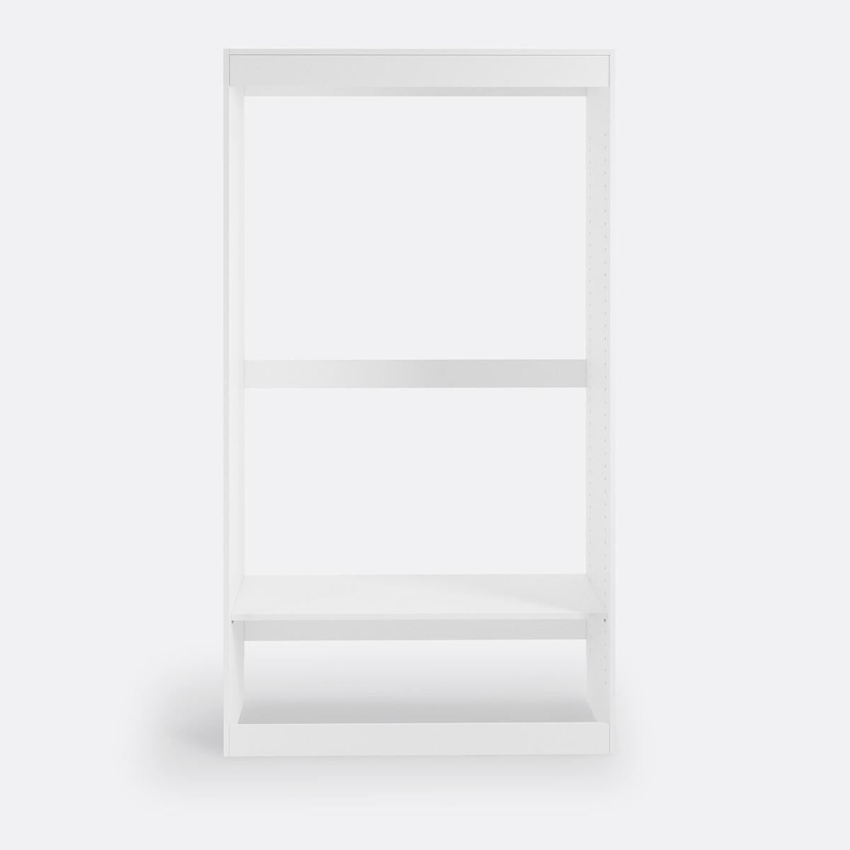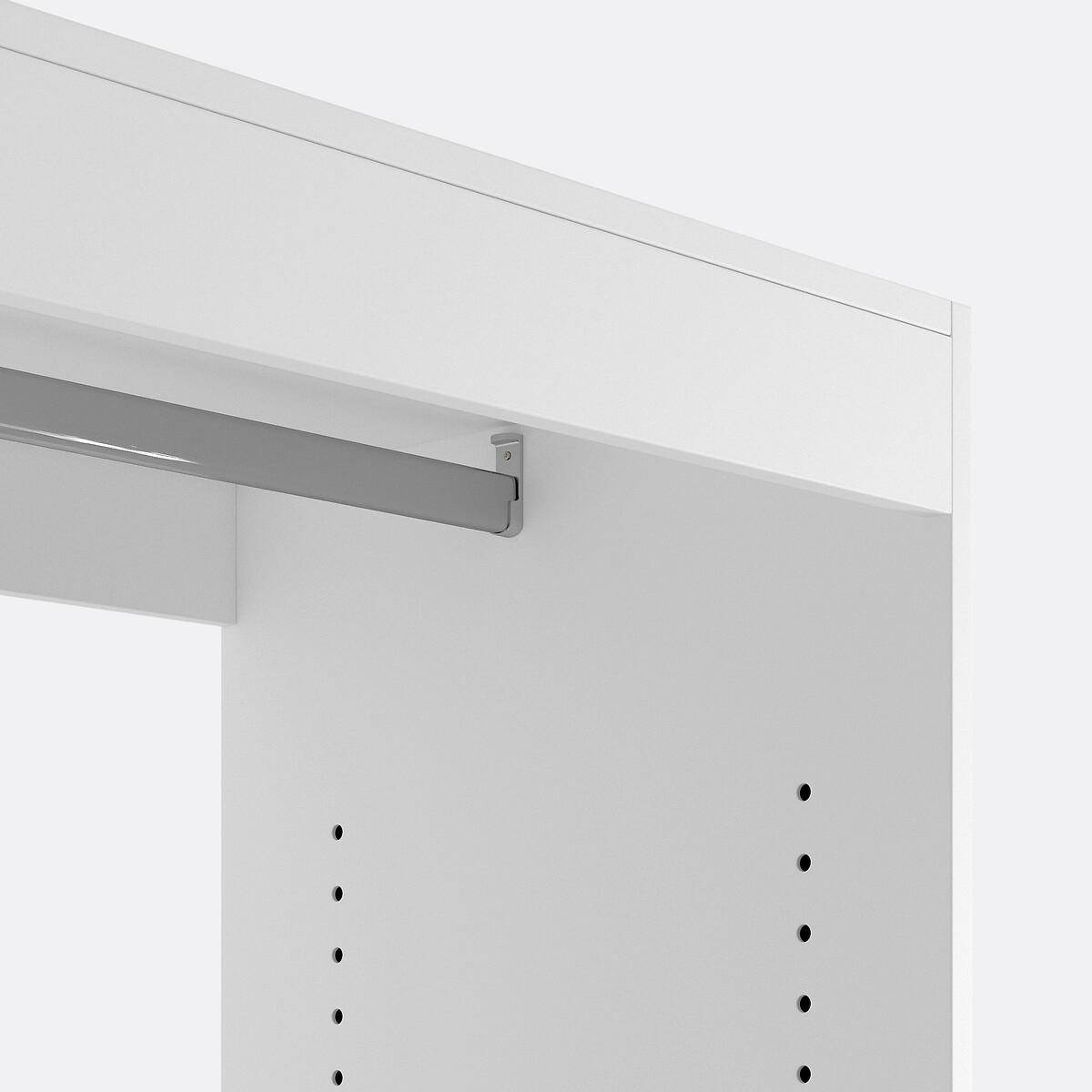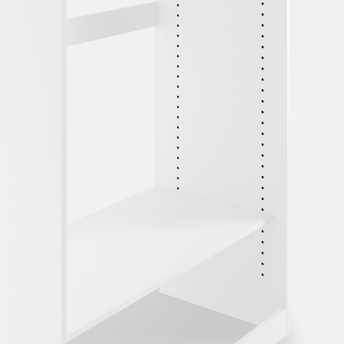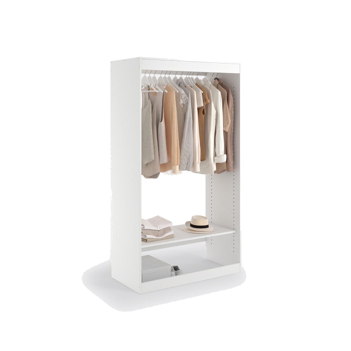 Build your own wardrobe! The Build Hanging wardrobe + 1 shelf module adapts to your needs and your space. Choose from 6 wardrobe modules, then select your favourite blind colour. Product Details • 1 chrome steel hanging rail • 1 vertical shelf at the bottom, height-adjustable, D45cm • Made of PEFC certified melamine particleboard • Must be fixed to wall • Wall mounting system included, screws and dowels not provided • Blind sold separately, size 4 (L96 x H190cm) suitable for this moduleDimensions. Total • Length: 100cm • Height: 180cm • Depth: 50cm • Weight: 38kg. Usable dimensions • Dimensions of shelf:L96.8 x D45cmDelivery:. This product is sold ready to assemble. • Made in France. • WOOD FROM SUSTAINABLY MANAGED FORESTS. PEFC certified wood comes from sustainably managed forests and controlled sources. PEFC contributes to ensuring sustainability and renewal through natural regeneration or planting by preserving trees of the future and promoting the diversity of species. Dimensions and weight of parcel2 parcels • L102 x H7.5 x D54cm - 16.5kg • L185 x H4.5 x D54cm - 22kg