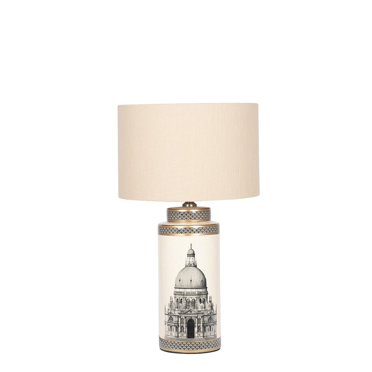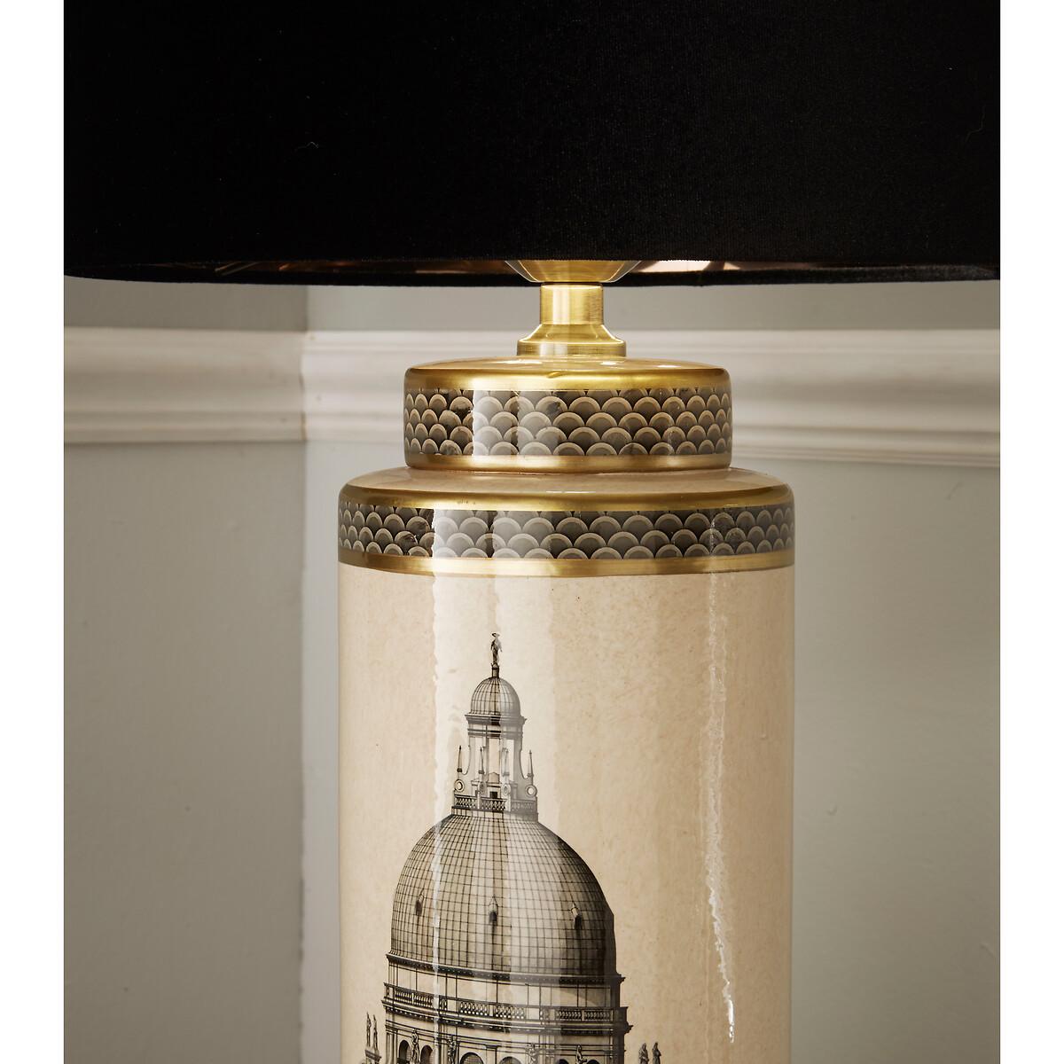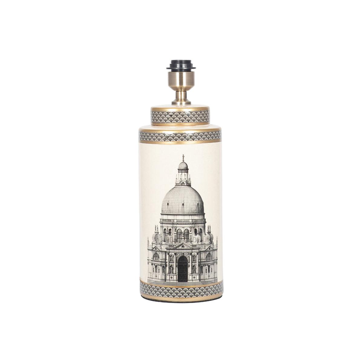 This monochrome architectural building print is sat upon a subtle cream background making this a striking detail on this cylindrical ceramic lamp. Take a look at our beautiful shade range for a choice of luxurious velvet or neutral linens to suit this base. Recommended lampshade size: 35cm diameter. Product Dimensions- L16 x W16 x H45cm. This product will be dispatched by one of our trusted suppliers. You’ll be contacted by their selected courier about your delivery.