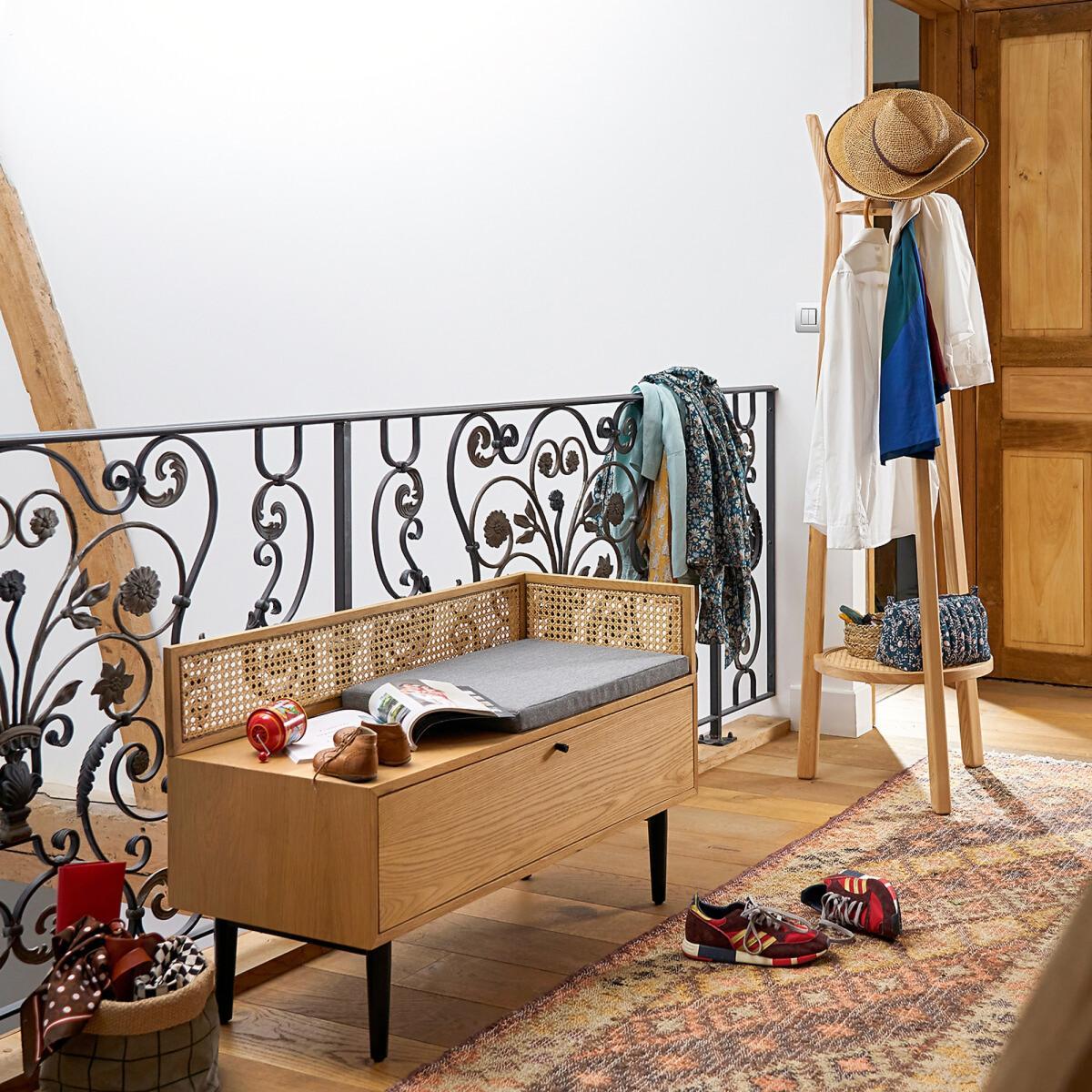 Stylish and functional! This coat rack made of solid ash and rattan cane brings a chic and natural touch to your entryway. Designed by La Redoute Interiors.