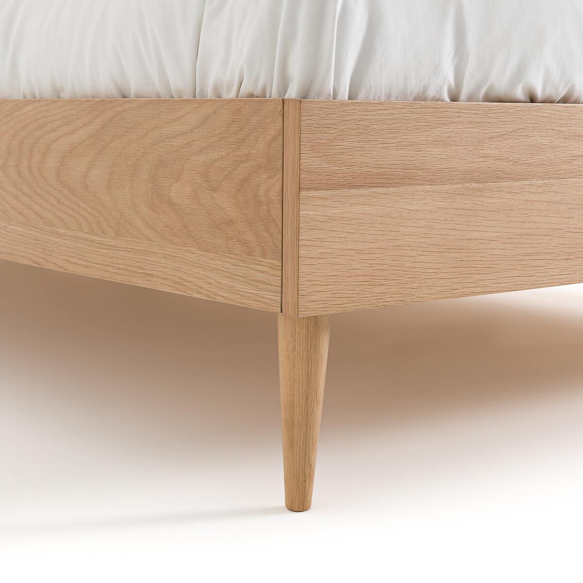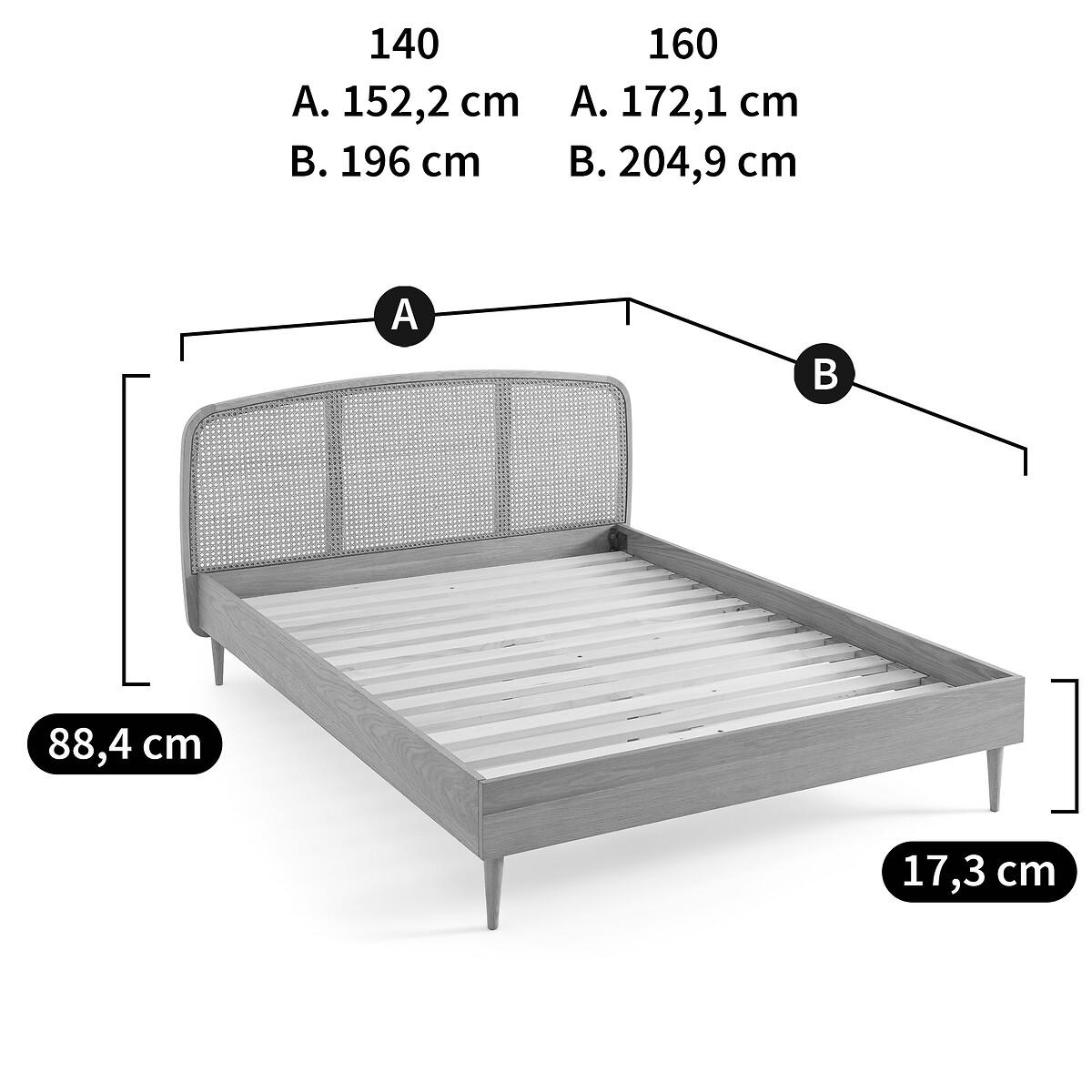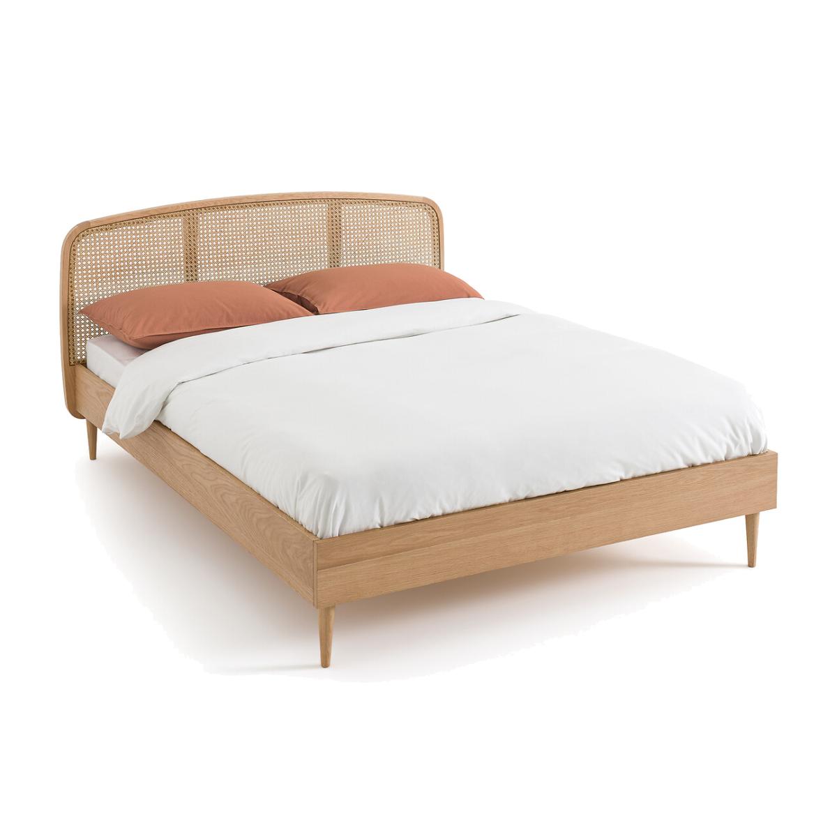 The Buisseau bed is part of our Signature Creations. An exclusive product, created by our designers. Combining cane and oak, Buisseau reinterprets the aesthetic of the 1960s. With a sleek curved design, it invites only one thing: relaxation. A must-have in the collection, among the favourites of our customers.. Created by La Redoute Intérieurs. Product Details • Structure in oak and oak veneered MDF with nitrocellulose varnish finish • Rattan cane and solid oak headboard with nitrocellulose varnish finish • Legs in solid oak with nitrocellulose varnish finish • Supplied with solid pine slatted base. To move your bed, we advise you to lift it and not push or pull it. Dimensions Double Size (140 x 190cm) • Width: 152.2cm • Height: 88.4cm • Length: 196cm • Height of headboard : 88.4cm • Height of legs : 17.3cm • Weight: 39kg. King Size (160 x 200cm) • Width: 172.1cm • Height: 88.4cm • Length: 204.9cm • Height of headboard : 88.4cm • Height of legs : 17.3cm • Weight: 43kg • Assembly required. • WOOD FROM SUSTAINABLY MANAGED FORESTS. FSC® certified wood comes from forests that are environmentally, socially and economically well managed. Dimensions and weight of parcel3 parcels. Double Size: • L161 x H8 x D85.5cm. 13kg • L198 x H18.5 x D23.5cm. 21kg • L143.5 x H17.5 x D18cm. 13.5kg. King Size: • L181 x H8 x D85.5cm. 14kg • L208 x H18.5 x D23.5cm. 23kg • L163.5 x H18 x D19.5cm. 15kg