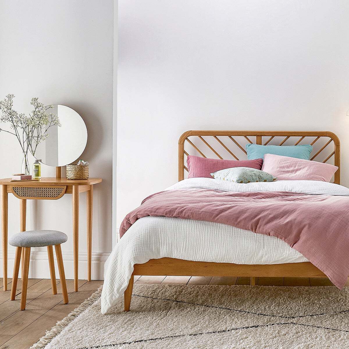 I love this little buzzy bedside table for its simple yet moulded design, which works well in both modern and Scandinavian-inspired interiors. Its natural wood finish adds warmth without overpowering a space, making it ideal alongside soft textiles or in a neutral colour palette. Practical styling tips include pairing it with a minimal lamp, a small stack of books, or a decorative dish for accessories. It’s versatile enough to work in bedrooms with limited space or to add charm as a side table in a cosy reading nook. Using it with other light wood or rattan pieces helps create a cohesive, laid-back vibe that feels calming and effortlessly stylish.