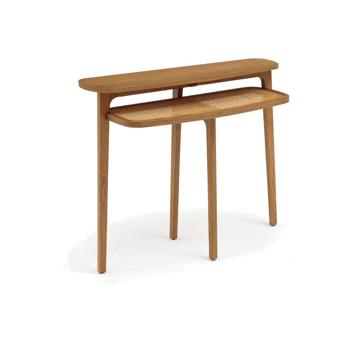 The Buisseau console will seduce you with its organic curves and its retro-trendy spirit. Made of solid oak and rattan cane, this double tray console brings a chic and natural touch to the decor !