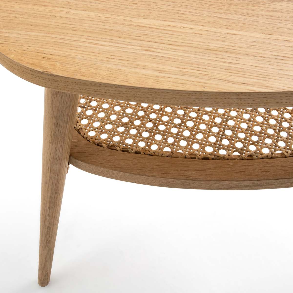 Our Buisseau coffee table is ready to receive your cups, books and anything else you like to keep close at hand. With its gentle curves and natural accents, it radiates retro appeal. Fashioned from oak and rattan cane, this double surface table will bring a touch of natural chic to your space!