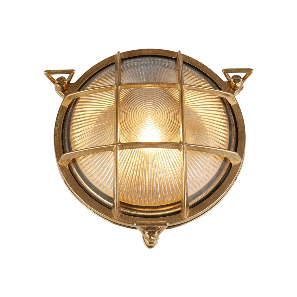 The Bulkhead Outdoor light can be used for both walls and ceilings, and so is the perfect addition to any outdoor space, garden or porch, combining functionality and style with its durable construction from solid brass metal. With its protective cage design and brass colourway, this outdoor wall light not only adds visual appeal but also provides practical and safety benefits. The cage acts as a shield, safeguarding the bulb and internal components from accidental damage and the IP64 rating protects from weather conditions such as rain, wind, and debris. The Bulkhead Outdoor light can be used for both walls and ceilings, and so is the perfect addition to any outdoor space, garden or porch, combining functionality and style with its durable construction from solid brass metal. With its protective cage design and brass colourway, this outdoor wall light not only adds visual appeal but also provides practical and safety benefits. The cage acts as a shield, safeguarding the bulb and internal components from accidental damage and the IP64 rating protects from weather conditions such as rain, wind, and debris.