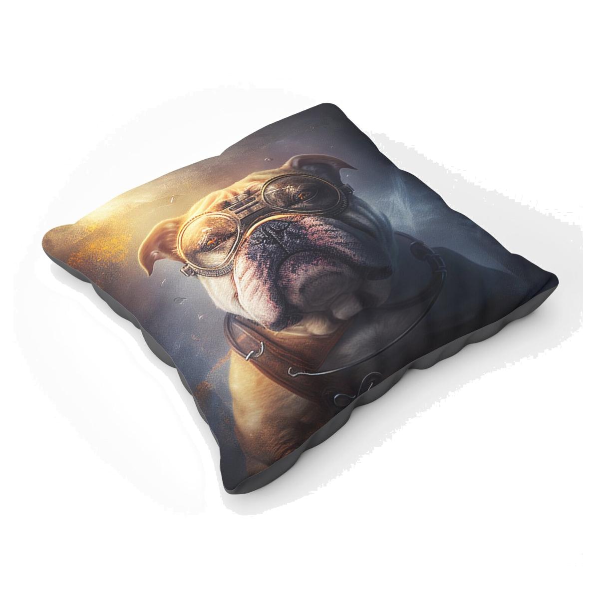 Bulldog With Glasses Splashart Golden Floor Cushion - Brown