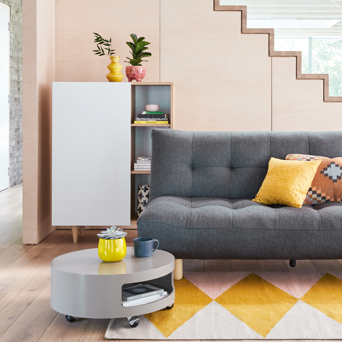 The Bumble grey coffee table with wheels is both stylish and practical. Combining good looks with a small footprint, this moveable design offers spacious storage for magazines, books and accessories. Made from lacquered wood, Bumble provides a great focal point and is perfect for modern spaces. Part of the Bumble range, different coloured side tables are available.
