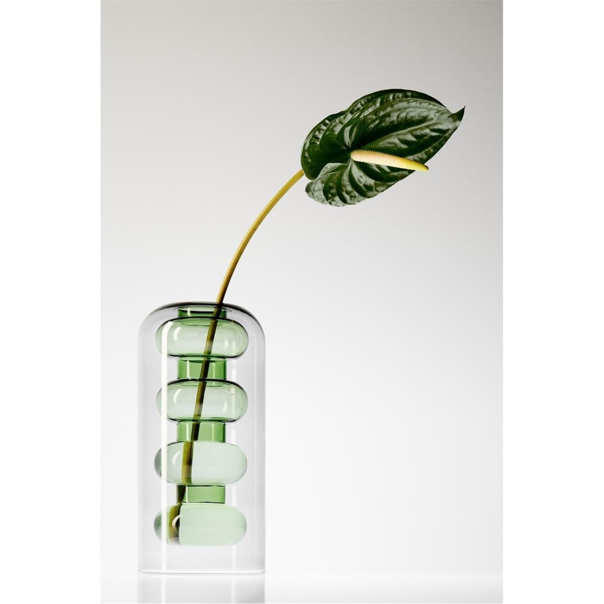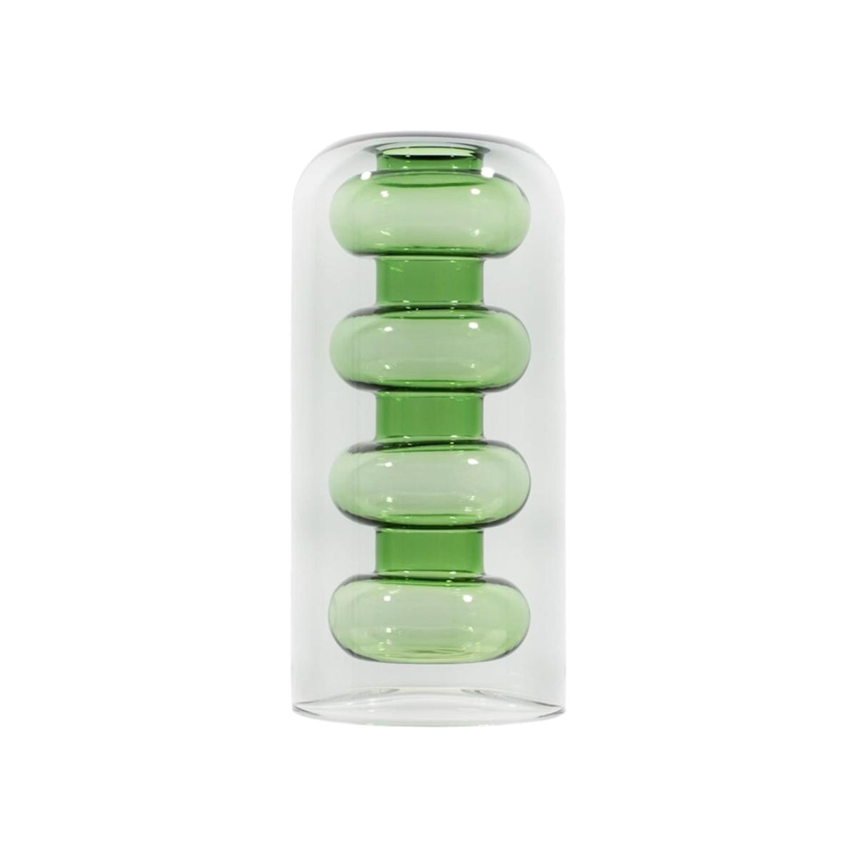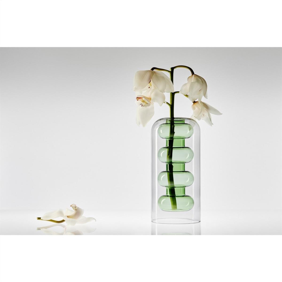 I love this tall Bump Vase for its clean, modern design and playful form. Its bold silhouette works beautifully in contemporary or minimalist interiors, where it can be a statement piece on its own or grouped with other vases of varying heights. This piece lends itself well to showcasing freshly cut stems or flowers with strong stems and structural blooms, but it also looks great empty as a sculptural decor element. Practical styling tips include placing it on a console table, mantelpiece, or sideboard to add colour and shape to your space, and pairing it with other green and neutral accents for a cohesive look. Its transparency and soft green hue help it integrate seamlessly into various colour schemes without overwhelming the surroundings.