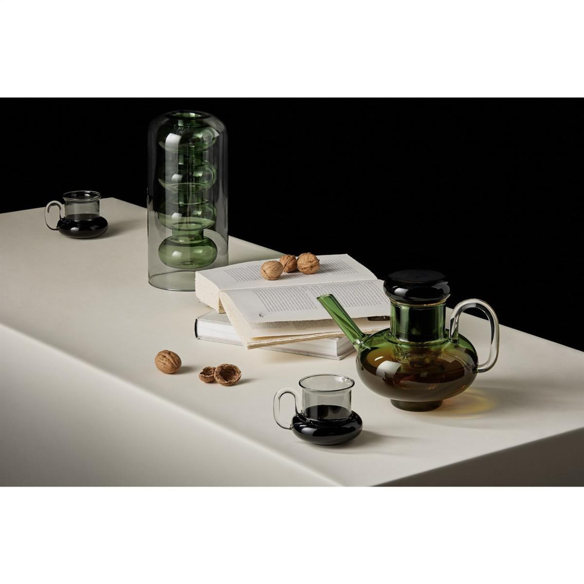 Bump is a family of minimalist, borosilicate vessels designed to serve as the ritualistic instruments of every day drinking and hosting. Delicately handmade with subtle levels of green and grey tonal translucency, Bump offers an elegant approach to the alchemical processes of tea making, mixology and floral arrangements.