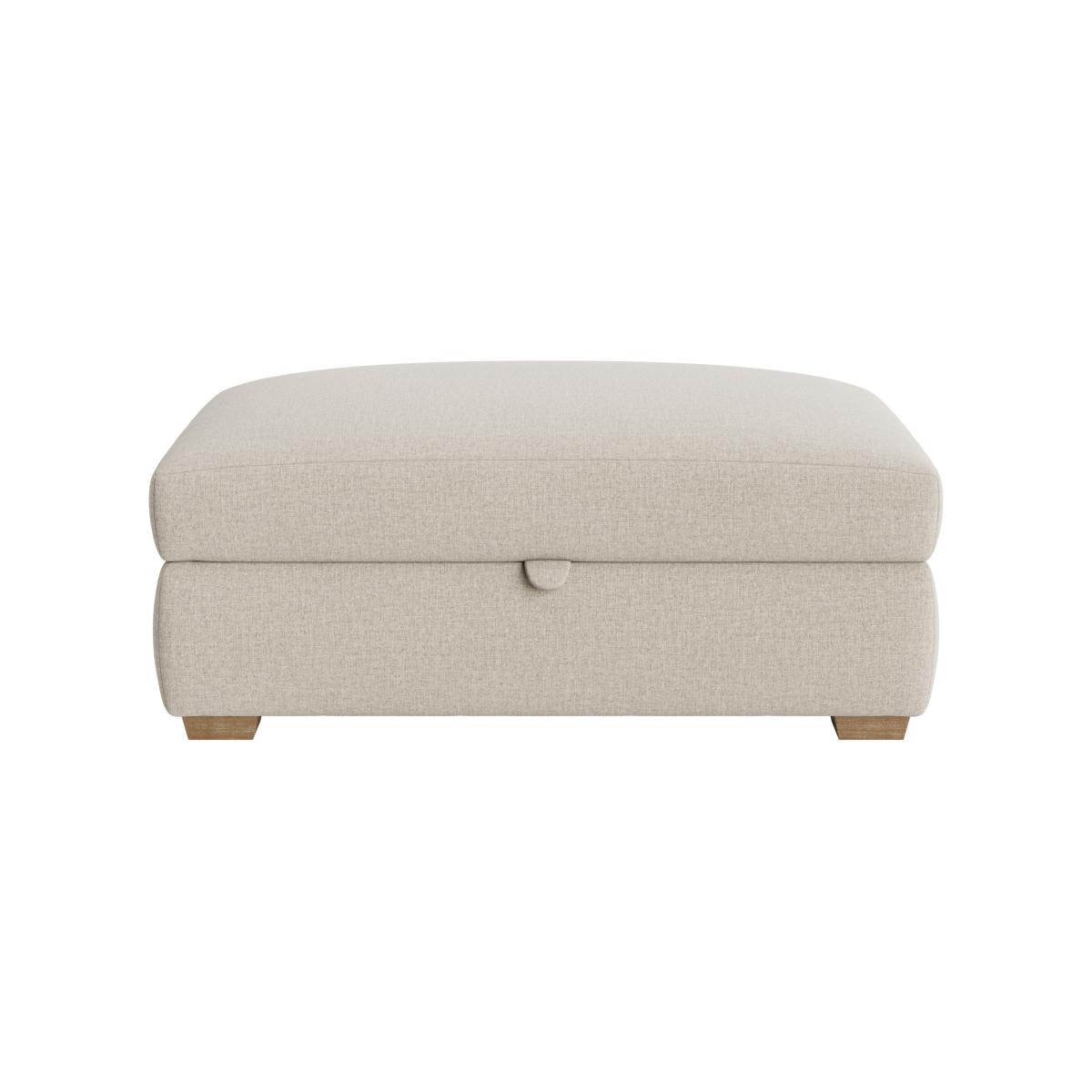I love this footstool because it’s both functional and versatile, making it an easy addition to many interiors. Its understated design and neutral tone allow it to blend seamlessly into both contemporary and traditional spaces. The incorporated storage feature is a real bonus, perfect for tucking away throws, magazines, or accessories, helping to keep living rooms clutter-free. It works well in cosy corner schemes as a supplementary seat or footrest, especially in family or casual living rooms. For styling, consider placing it with a mix of textures-perhaps a wool or linen throw on top-to soften its appearance, and pairing it with other neutral tones or subtle colours for a calm, cohesive look. It can also serve as a lovely coffee table alternative when topped with a tray, making it both practical and stylish.