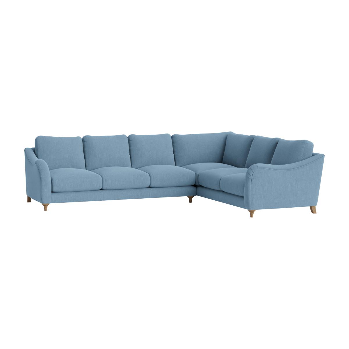I love this corner sofa for its versatile and inviting silhouette, making it a practical centrepiece for both contemporary and retro-inspired interiors. Its soft blue hue adds a pop of colour without overwhelming a space, and the roomier design offers excellent comfort and flexibility for seating multiple guests or family. When styling, consider pairing it with neutral or muted tones in cushions and throws to highlight its colour, or mix in patterned textiles for a vibrant look. It works particularly well in open-plan living areas or large comfy lounges; positions near a coffee table or a cosy rug will enhance its inviting appeal. To keep the look fresh, avoid overcrowding around it, letting the sofa be the star with complementary accessories that echo its relaxed yet stylish vibe.