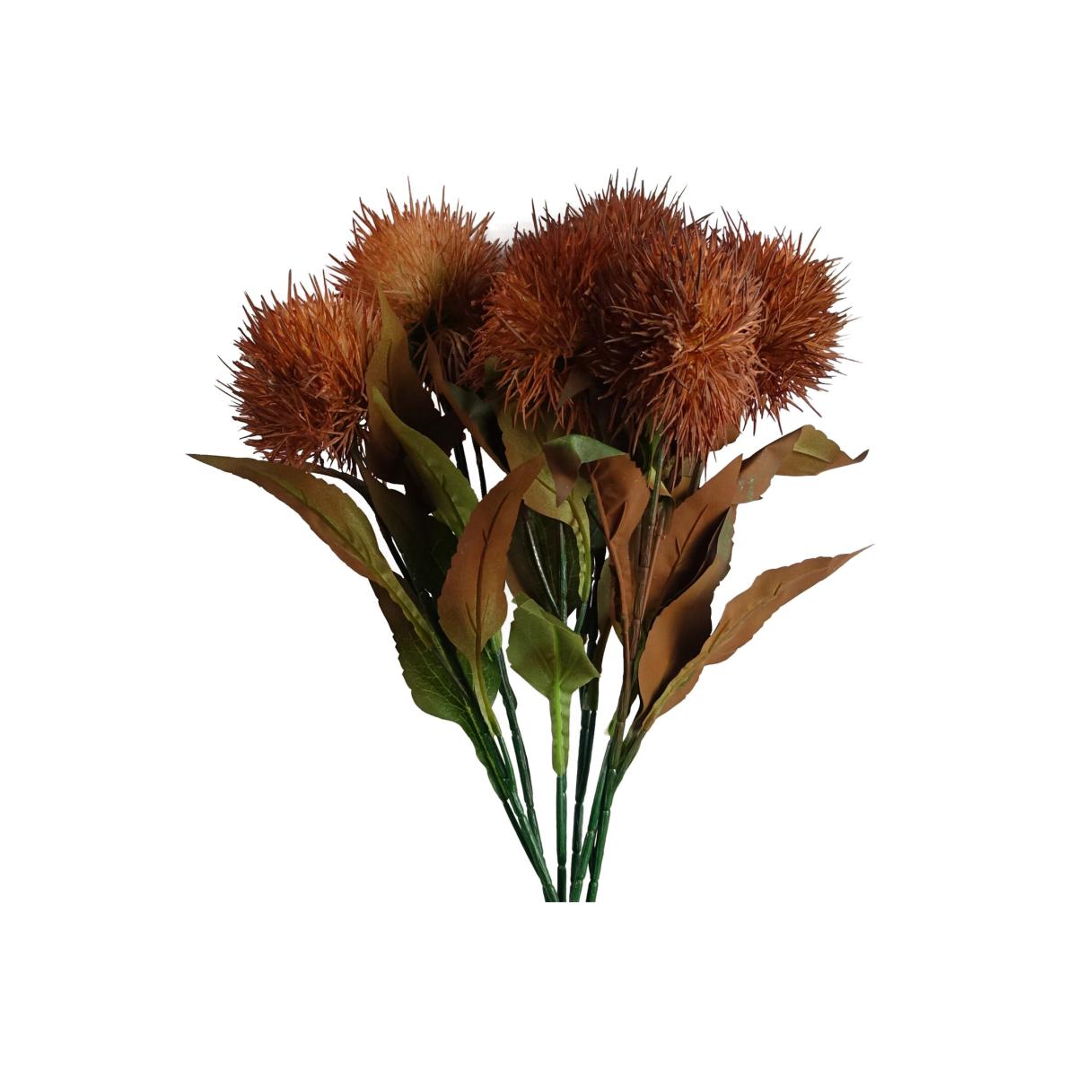 Pack of 6 Artificial globe thistle stem. Can be used to make arrangements with our other artificial flowers or as decorations on their own. Each stem has one large flower. Flowers are plastic and the leaves are silk. These are easy to cut down shorter using a pair of wire cutters if required. Some of our photos show vases to give an idea of size and possibilities for arrangement but no vases or planters are included with these flowers.