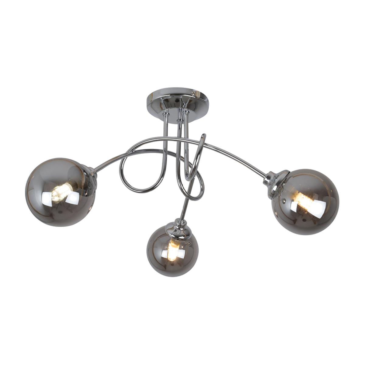 Illuminate your home with effortless elegance using the Bungo 3 Light Polish Chrome Ceiling Light. This stunning fixture features three intertwining arms, creating a captivating visual display that will be the centerpiece of any room. With a polished chrome finish, it exudes a modern and sleek aesthetic.. The Bungo 3 Light Ceiling Light comes complete with blown glass shades in a chromed smoke finish, adding a touch of sophistication to the overall design. These shades diffuse the light beautifully, creating a warm and inviting ambiance in your living space.. Part of the Bungo family, this ceiling light is designed to seamlessly match other fixtures in the collection, allowing you to create a cohesive and stylish look throughout your home.
