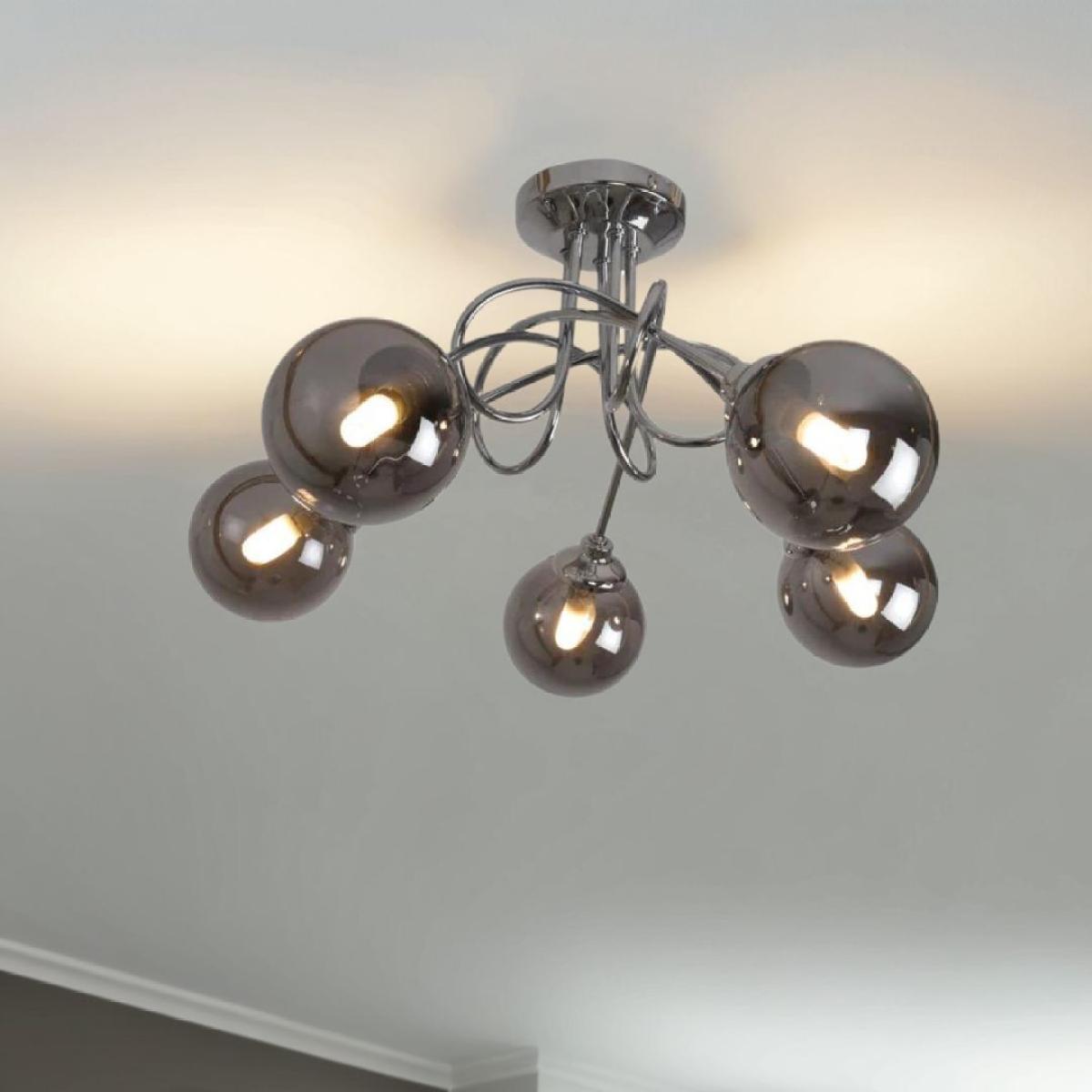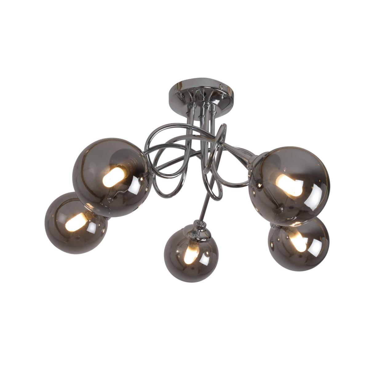 Illuminate your home with effortless elegance using the Bungo 5 Light Polish Chrome Ceiling Light. This stunning fixture features three intertwining arms, creating a captivating visual display that will be the centerpiece of any room. With a polished chrome finish, it exudes a modern and sleek aesthetic. The Bungo 5 Light Ceiling Light comes complete with blown glass shades in a chromed smoke finish, adding a touch of sophistication to the overall design. These shades diffuse the light beautifully, creating a warm and inviting ambiance in your living space. Part of the Bungo family, this ceiling light is designed to seamlessly match other fixtures in the collection, allowing you to create a cohesive and stylish look throughout your home. Illuminate your home with effortless elegance using the Bungo 5 Light Polish Chrome Ceiling Light. This stunning fixture features three intertwining arms, creating a captivating visual display that will be the centerpiece of any room. With a polished chrome finish, it exudes a modern and sleek aesthetic. The Bungo 5 Light Ceiling Light comes complete with blown glass shades in a chromed smoke finish, adding a touch of sophistication to the overall design. These shades diffuse the light beautifully, creating a warm and inviting ambiance in your living space. Part of the Bungo family, this ceiling light is designed to seamlessly match other fixtures in the collection, allowing you to create a cohesive and stylish look throughout your home.