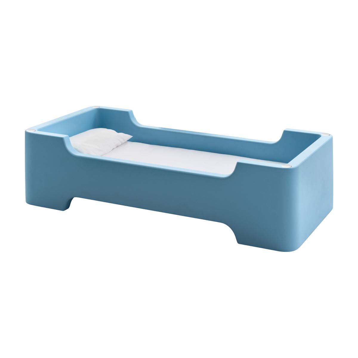 Bunky is a completely modular concept - easily assembled from just four pieces. It is made from rotational-moulded polyethylene and creates a sturdy, secure sleep and play environment for kids. All surfaces are smooth with no sharp edges, and the material is highly durable and easy to clean. Perforations under the mattress allow for ventilation. Bunky is also available as a child's single bed.