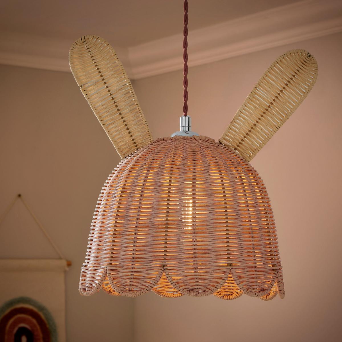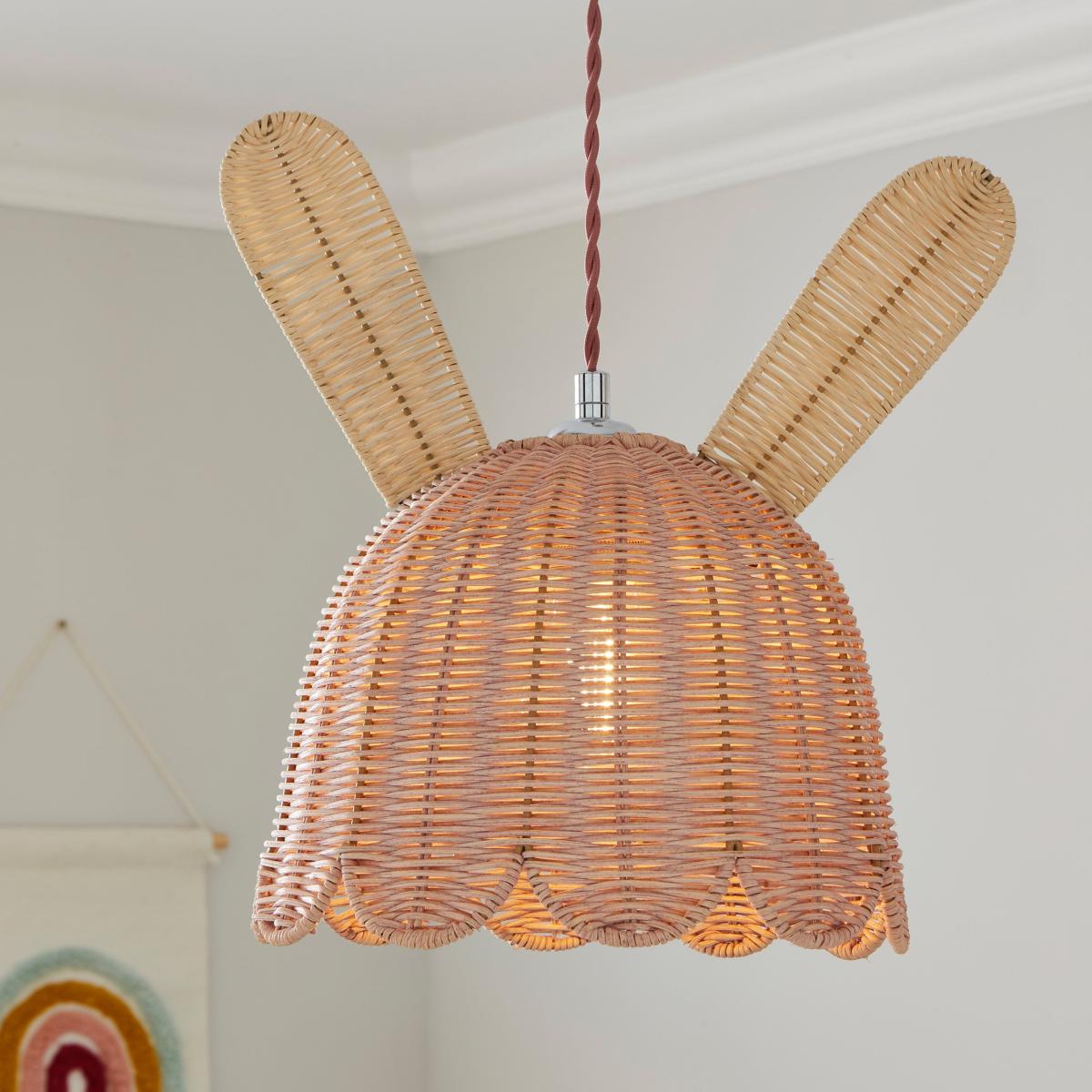 * Novelty, Bunny Shape* Made from Durable Rattan* Easy Fit - No Electrician Required* Ideal for Kids' Room* Requires: E27 Cap Type & Standard (GLS) Bulb* Can be used with E27 & B22 Lampholder Boasting an adorable bunny-inspired design, this pendant shade is the perfect addition to your little one's room. Made from durable and attractive rattan, it's available in multiple colourways and is sure to make anyone smile. Please Note: Cable not included.