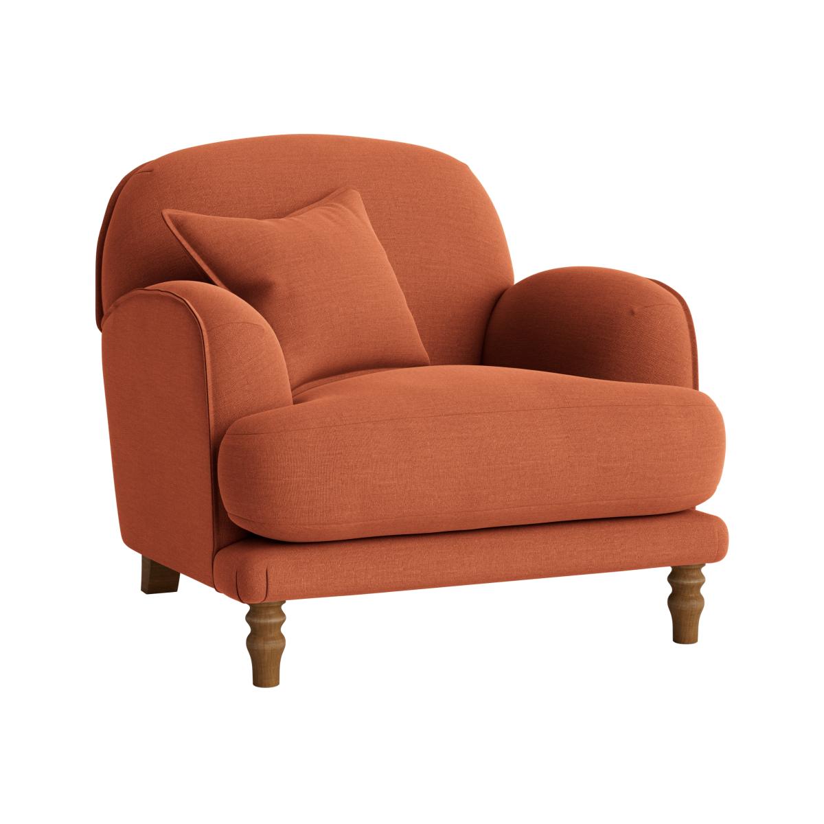 I love this armchair for its comfortable shape and charming retro vibe; it’s a versatile piece that can effortlessly soften any living space. It works particularly well in cosy reading nooks, eclectic lounges, or even bedrooms where you want a playful yet functional seating option. When styling, pair it with textured cushions or throws to add depth, and consider contrasting or complementary colours to keep the look fresh and inviting. Its warm, earthy tone makes it easy to integrate into both modern and traditional interiors, making it a great go-to for adding personality without overwhelming the space.