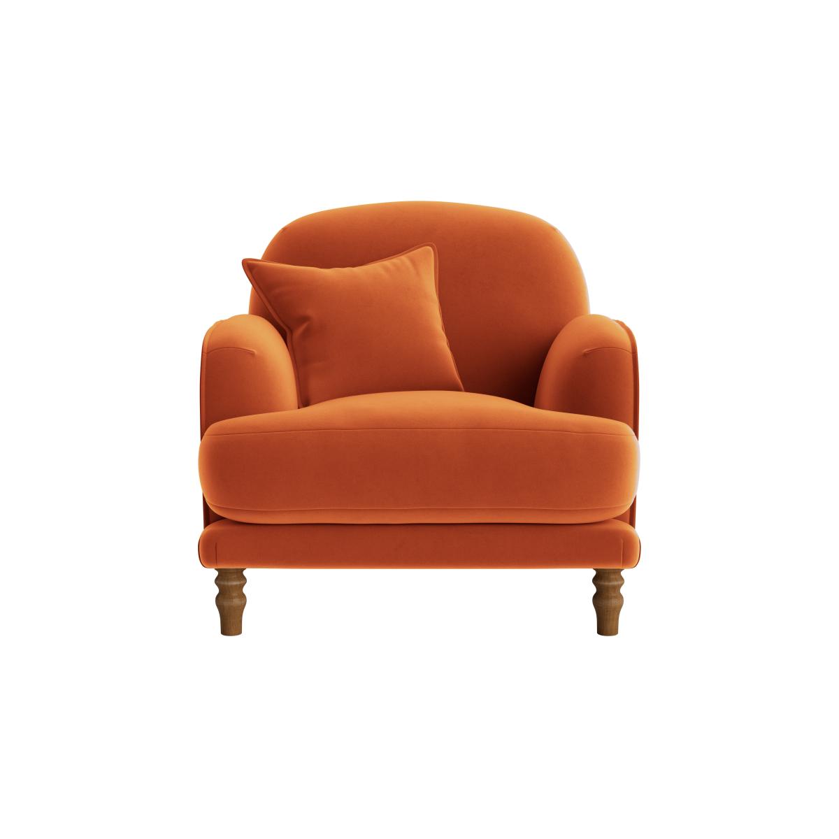 I love this little armchair for its playful yet versatile silhouette, which works well in both contemporary and eclectic interiors. Its cosy, rounded shape and warm terracotta hue make it an inviting choice for living rooms or reading nooks, especially when paired with soft textures or layered with complementary cushions. Practical styling tips include placing it alongside a small side table and a cosy throw to create a welcoming corner, or using it as a statement piece in a neutral palette to add colour and personality. Its size also makes it adaptable for smaller spaces, where it can inject style without overwhelming the room.