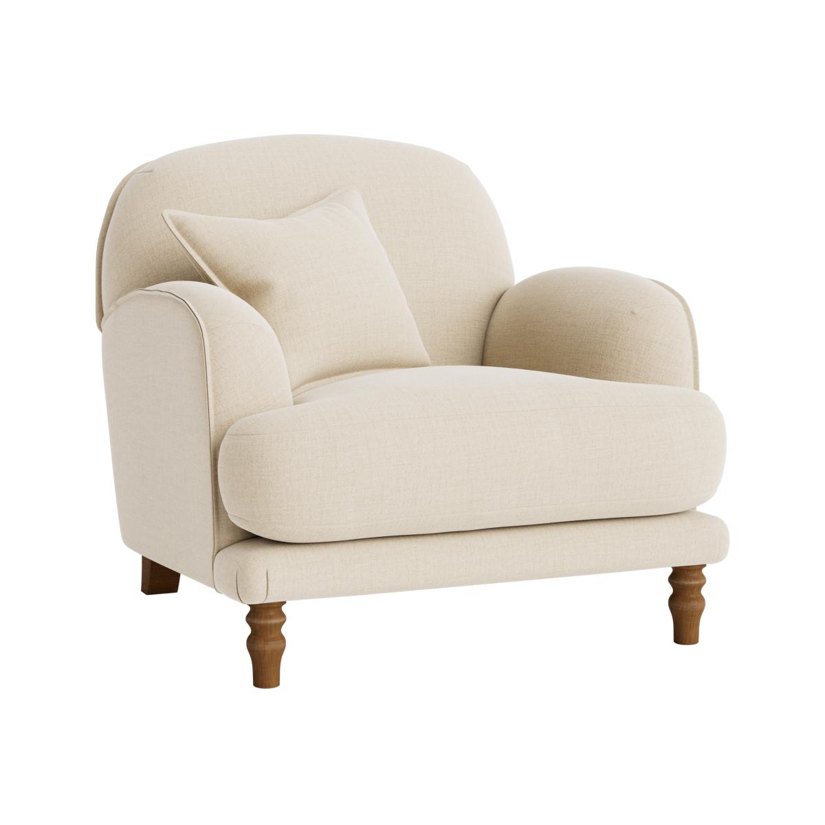 I love this armchair for its inviting, plush silhouette and timeless appeal. It works particularly well in cosy living rooms or relaxing reading nooks, where comfort is key. Pair it with neutral tones for a minimalist look or add colourful cushions to inject personality. Practical styling tips include placing it near a side table with a reading lamp or layering with textured throws and complementary soft furnishings to create a welcoming, lived-in vibe. Its understated design makes it versatile enough to fit into both classic and contemporary interiors, making it a reliable choice for many schemes.