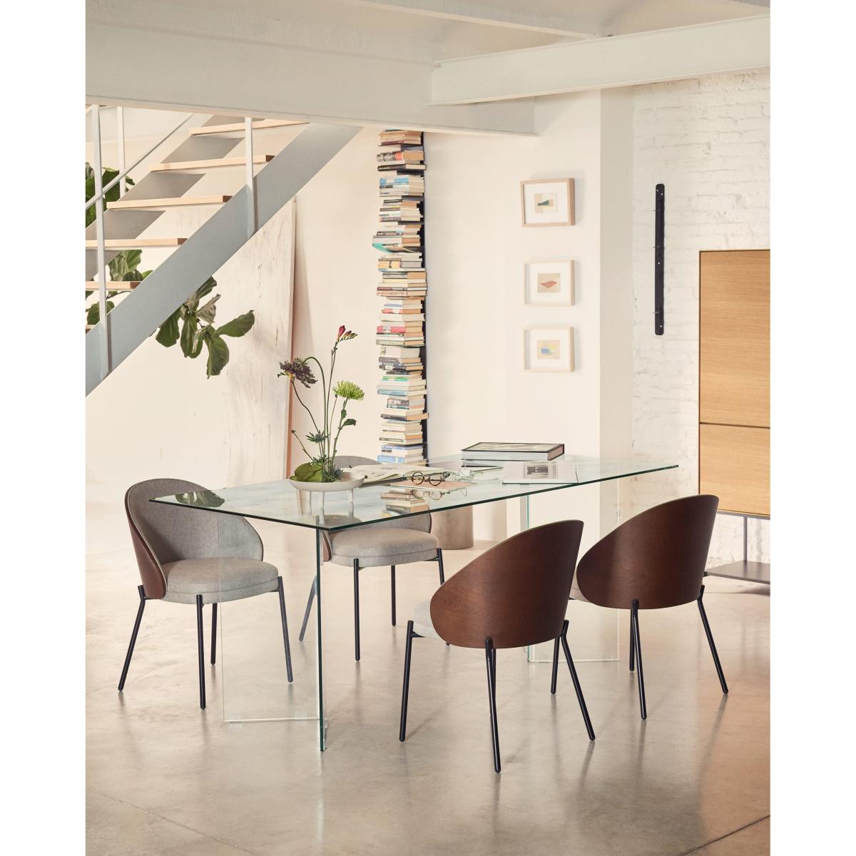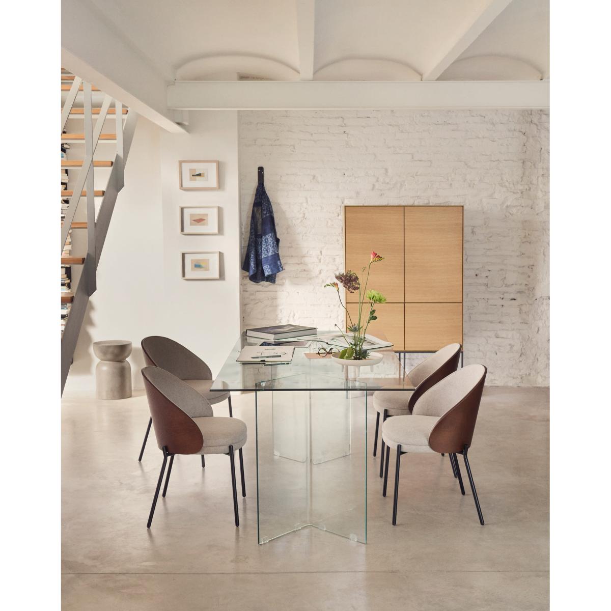 I’m a fan of this 180 × 90 cm glass table because its clean lines and transparency make any room feel more spacious and uncluttered. It works especially well in minimalist, Scandinavian or contemporary open-plan spaces, where you can maximise natural light and let other design pieces take centre stage. For styling, keep the tabletop clear or add a simple ceramic vase or a slim fruit bowl to maintain its airy look. Pair it with upholstered dining chairs in muted tones or slim metal-framed seats to enhance the modern feel. Remember to use a gentle, non-abrasive cleaner to keep the glass clear and scratch-free.