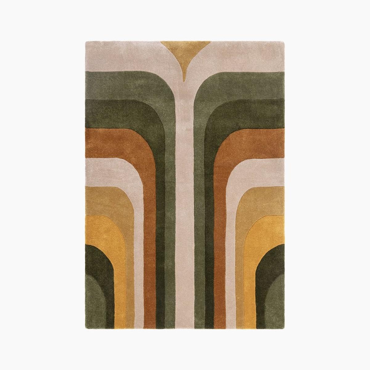 Handtufted in India for a perfectly even and luxuriously soft in a wool finish with a slightly sheen look, the Burford Retro Rug features an alluring symmetrical design in 70s-inspired hues of mustard, orange, and moss green. For a more eco-friendly approach to home decor, the Burford Retro Rug is made from 100% recycled materials. For a rich depth of colour and unique softness, the materials used in this rug are not only of the highest quality but it is made from 100% recycled PET yarns so it is kinder to the environment too.