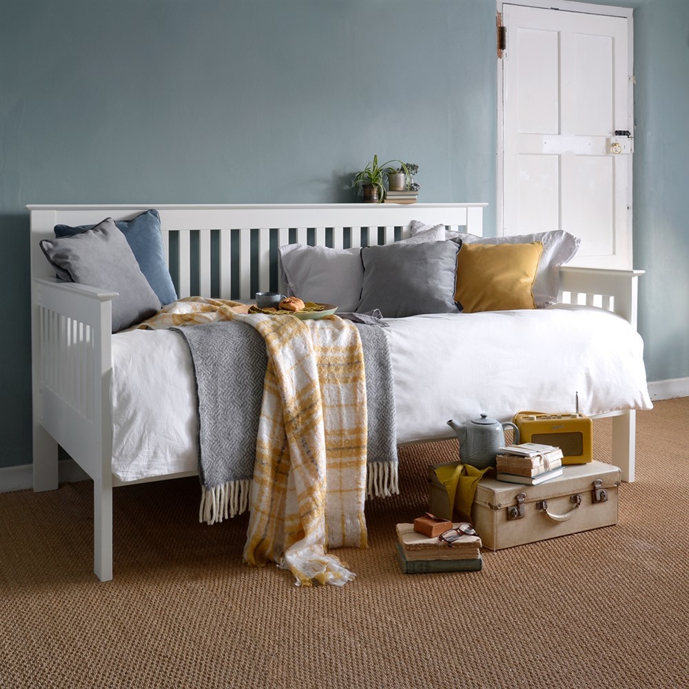 By day, it will be a comfortable sofa piled up with comfy cushions. At night, it will become a dreamy bed made up with crisp linen. Ideal for a guest room and perfect for a teenager’s bedroom, this beautifully made day bed from our Burford range is painted a calming ivory and will help create a relaxing atmosphere in which to escape the stresses of the day. The simple, slatted design will suit all kinds of décor and, of course, it will look brilliant teamed up with some other pieces from this elegant range.