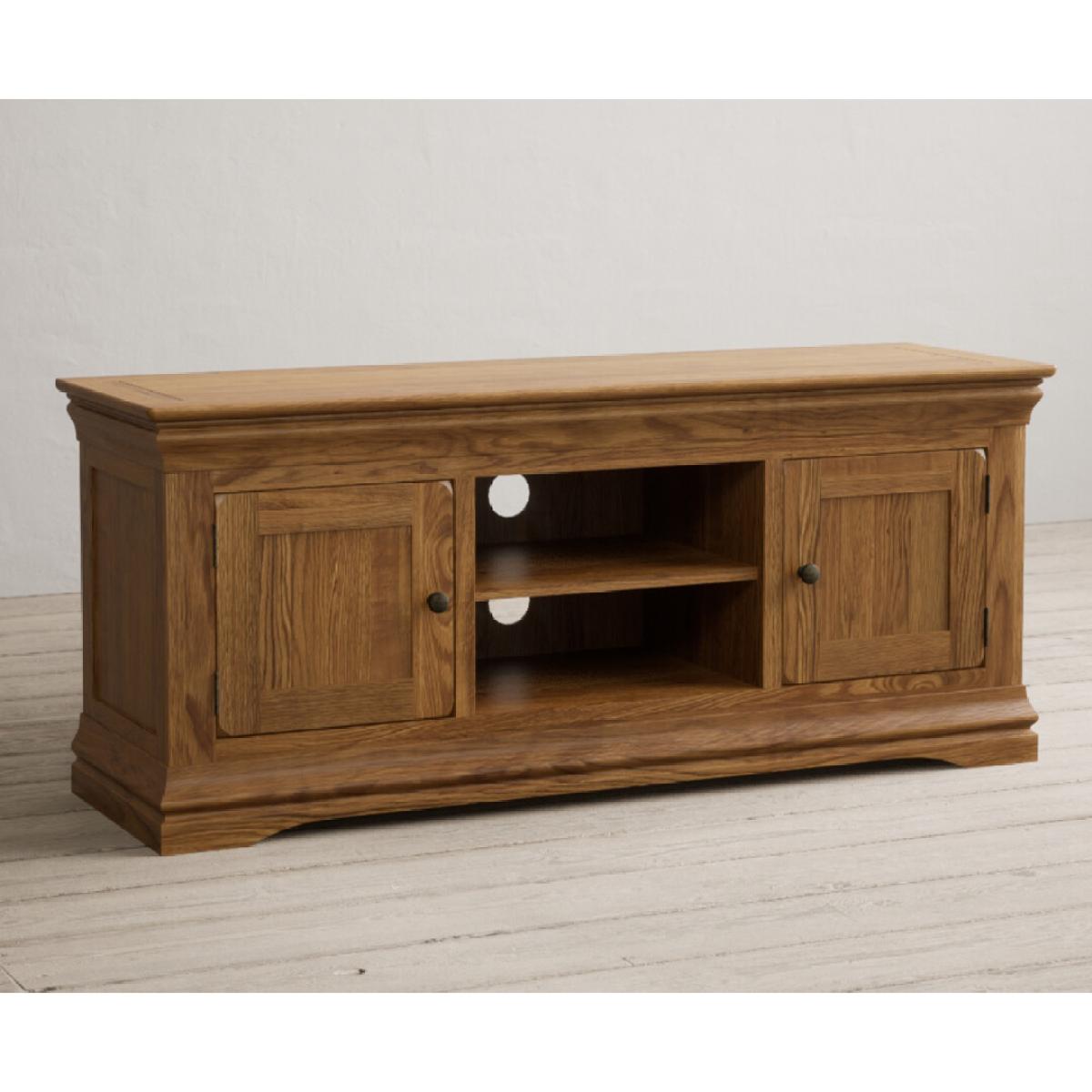 The Burford Rustic Solid Oak Large TV Unit is a sturdy 100% solid oak TV unit with a rustic finish.