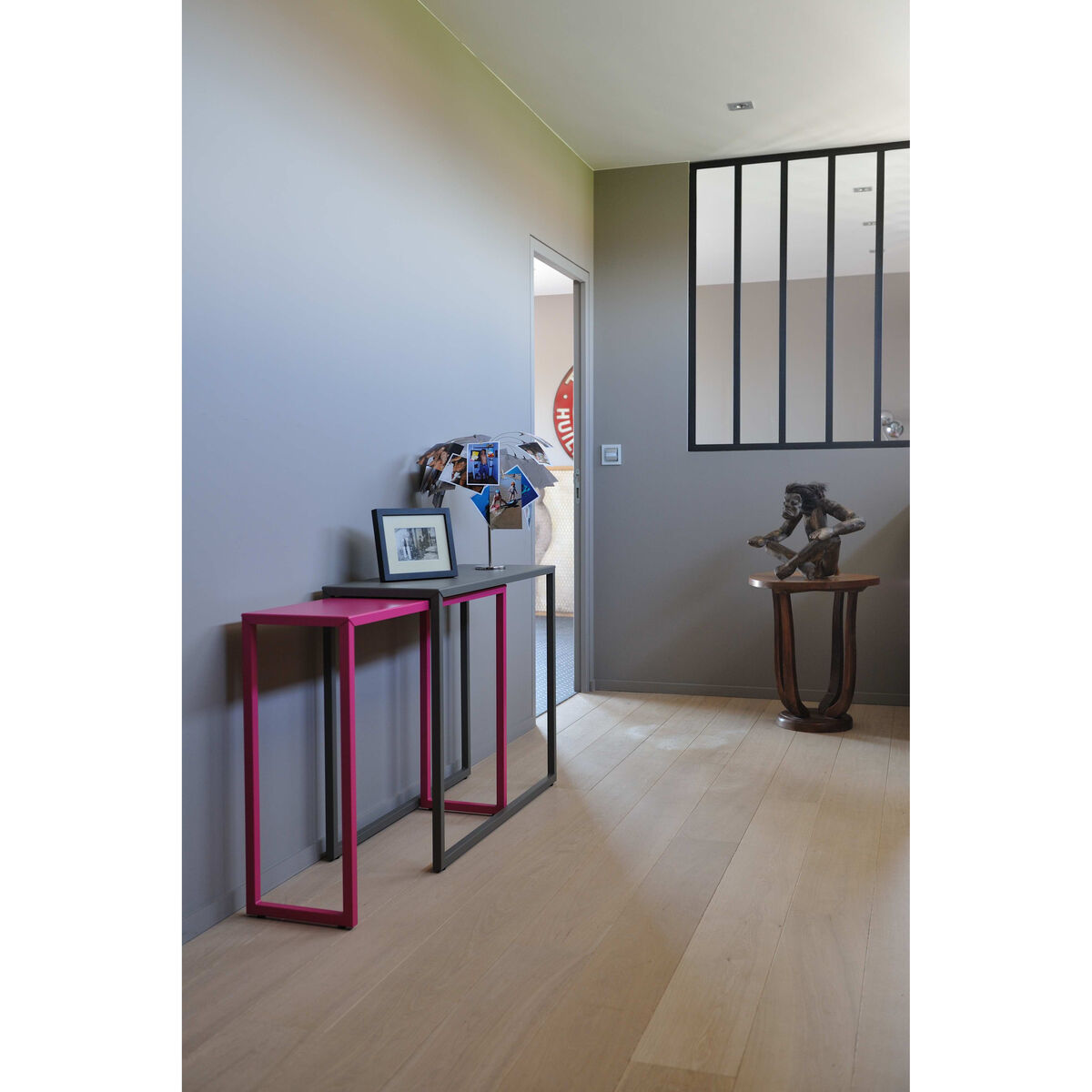 I love this console because of its bold colour blocking and streamlined silhouette, which adds a contemporary edge to any space. It works particularly well in modern or industrial interiors, where its clean lines and mixed materials can really stand out. For styling tips, consider layering with a few sculptural accessories or a cluster of small plants to soften the look, or place it against a statement wall for added visual interest. It's also practical as a slim storage spot in a hallway or behind a sofa, making it both functional and stylish without taking up too much space.