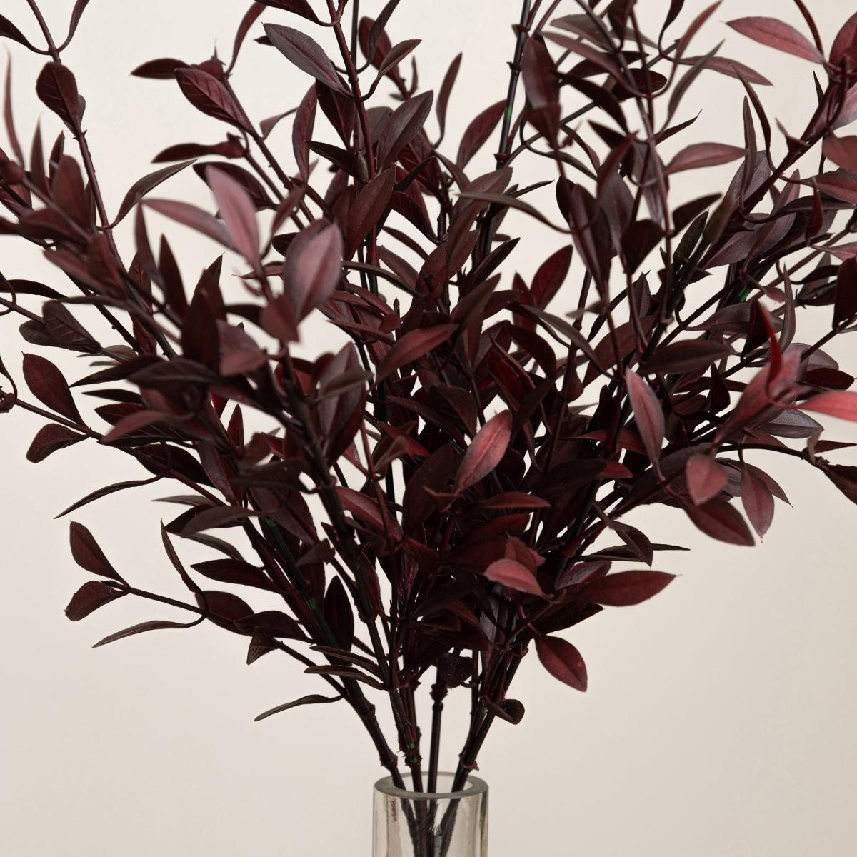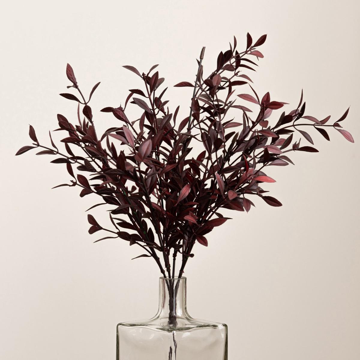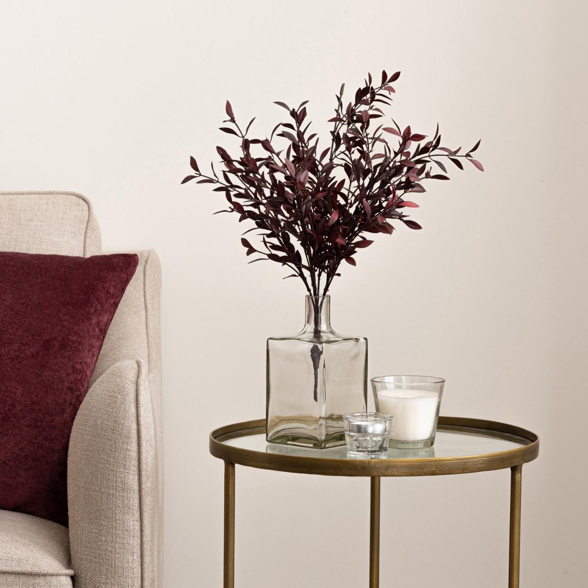I love the dark, rich tone of the burgundy huckleberry plant-it adds warmth and depth to a variety of interiors. It works particularly well in modern or minimalist spaces where a pop of colour can make a statement without overwhelming, as well as in more traditional settings for a touch of colour contrast. A practical styling tip is to place it in a clear vase with some height to elevate the arrangement, or cluster a few for a fuller look. It’s ideal for centrepieces or to add colour on side tables and shelves, requiring no maintenance and always ready to look perfect.