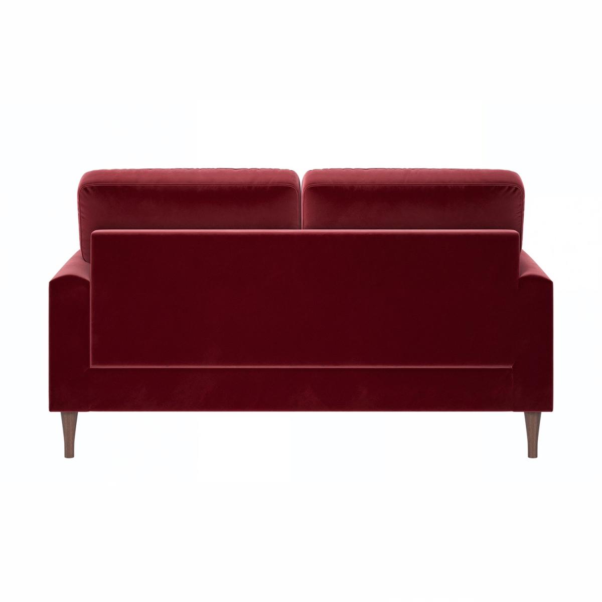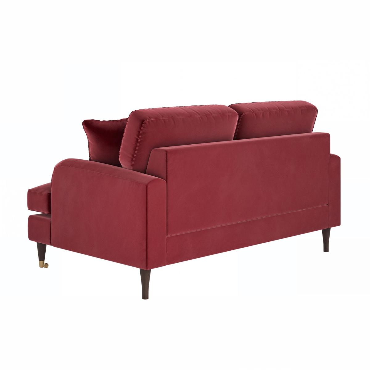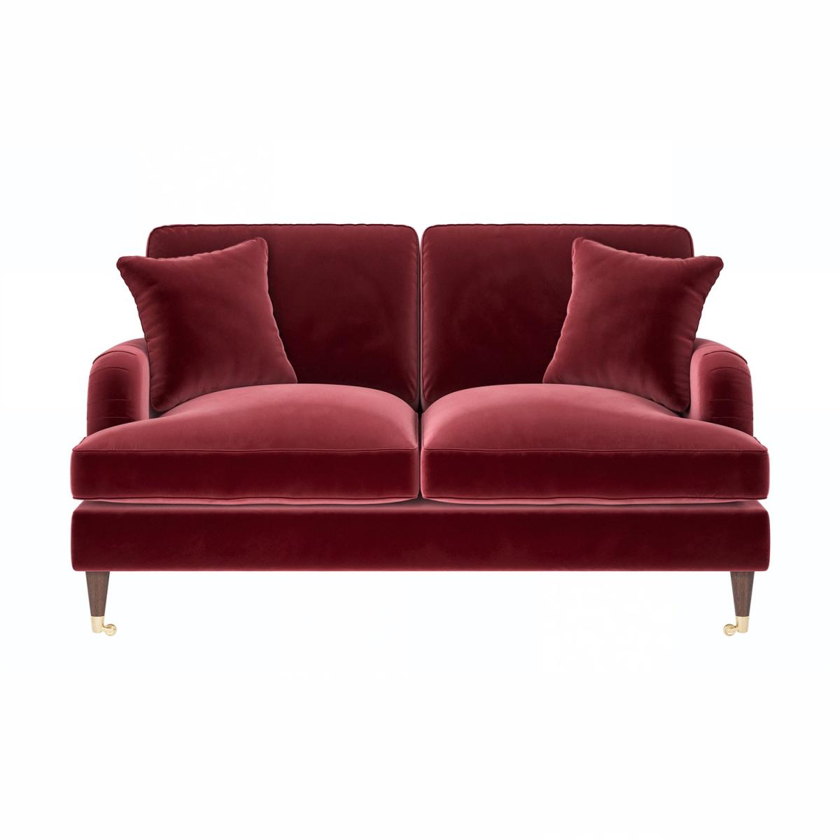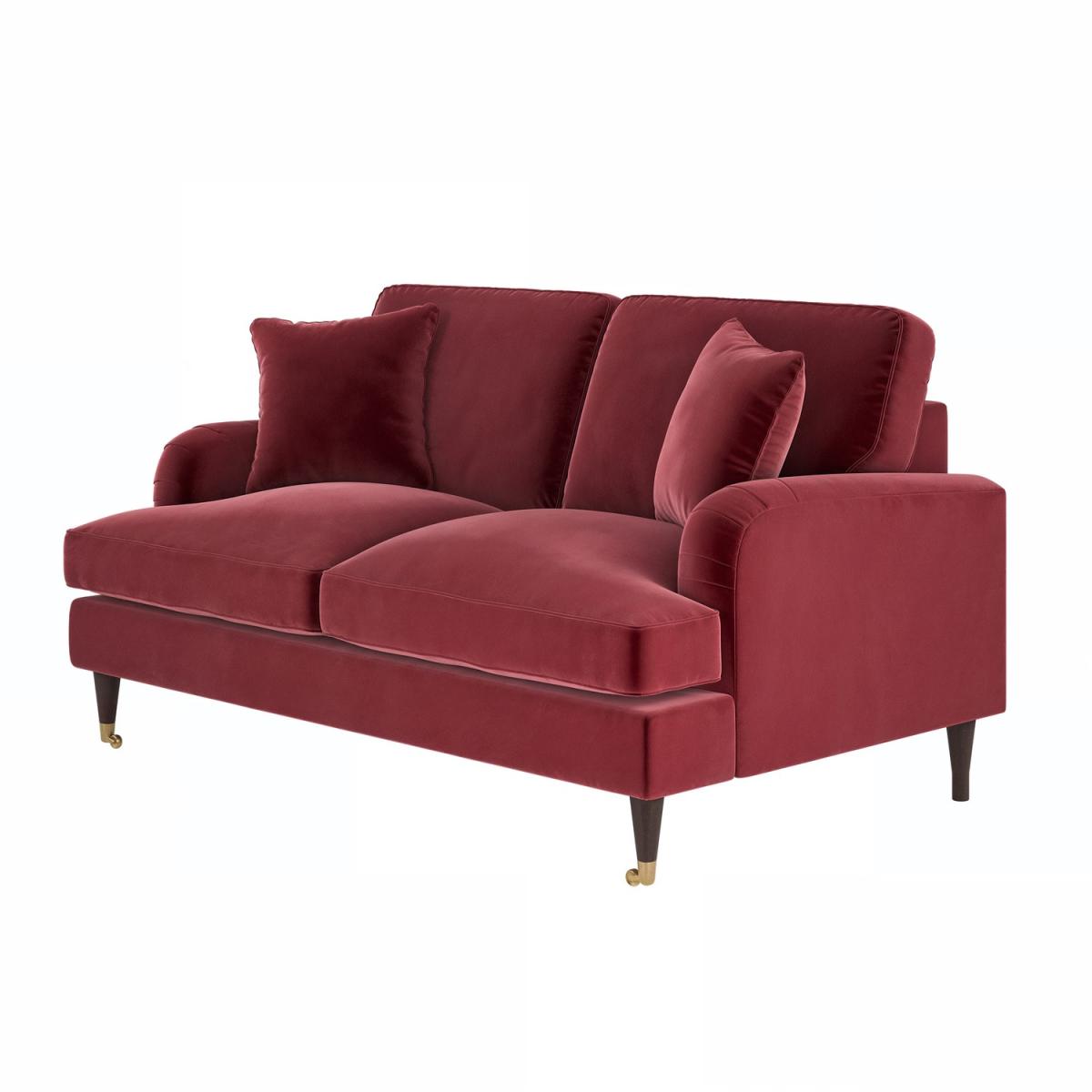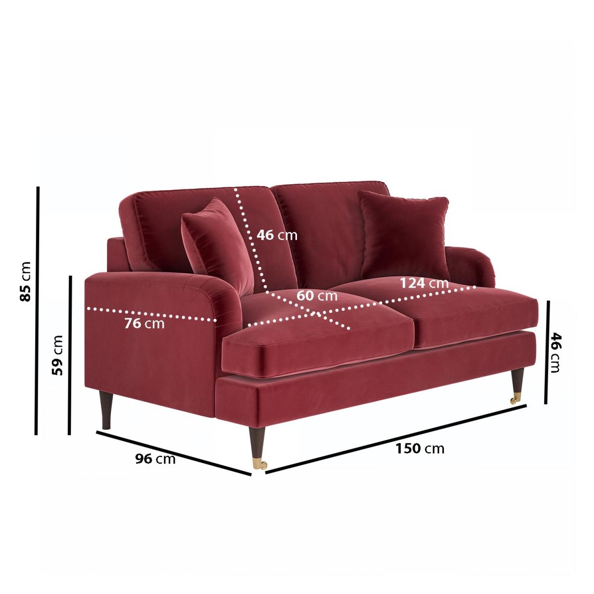Foam filled Reversible Back Cushions Scatter Cushions Included With its classic ruched saddle arms and elegant silhouette, the Payton 2-Seater Sofa adds a touch of traditional charm to any interior. The refined detailing makes it a statement piece in any living space. Designed to seat two people comfortably, this sofa offers generous space for a small family, entertaining guests, or cosy nights in. The plush cushions provide deep, luxurious seating, making it an inviting centrepiece for any home. Crafted from high-quality solid wood, this sofa is built to last, providing strong and reliable support for years to come. The sturdy construction ensures everyday durability, making it a long-lasting addition to your living space. The dark wenge-stained wooden legs add a sophisticated touch, while the gold castors provide both charm and functional mobility. The castors make it easy to reposition the sofa without compromising stability. Upholstered in a high-quality and rich burgundy velvet, the Payton Sofa is soft to the touch, offering a comfortable and inviting seating experience. The warm red tone complements a variety of colour palettes, making it easy to integrate into any home. Whether used in a formal sitting area, a cosy living room, or an open-plan space, this sofa offers a blend of style, comfort, and practicality, making it ideal for families, couples, or entertaining guests. The Payton 2-Seater Sofa is the perfect blend of traditional elegance and modern comfort. Designed to accommodate two people comfortably, this spacious sofa offers a timeless aesthetic with ruched saddle arms, bringing a touch of classic charm to your home. Upholstered in high-quality velvet fabric in a versatile dark red tone, it effortlessly complements any interior style. Built with a solid wood frame, this sofa is designed for durability and long-lasting support. The dark oak legs with gold castors provide a sleek and stylish contrast, elevating the look while ensuring easy manoeuvrability. For added personalisation, light oak legs are available as an alternative, allowing you to tailor the sofa to your style. Comfort is key, and the removable back and seat cushions ensure plush seating and easy maintenance. Two matching scatter cushions add extra cosiness and style, making it an inviting centrepiece for your living space. With simple assembly required—just attach the legs—this sofa is a practical, stylish, and long-lasting addition to any home. Dimensions: W150 x D96 x H85 cm Weight: 50 kg Max supported weight: 100 kg per seat Seats: 2 people Colour: Burgundy Finish: Upholstered Material: Velvet Frame: Solid plywood and eucalyptus wood Assembly required: Yes - just attach the legs Packaging dimensions: W152 x D98 x H61 cm