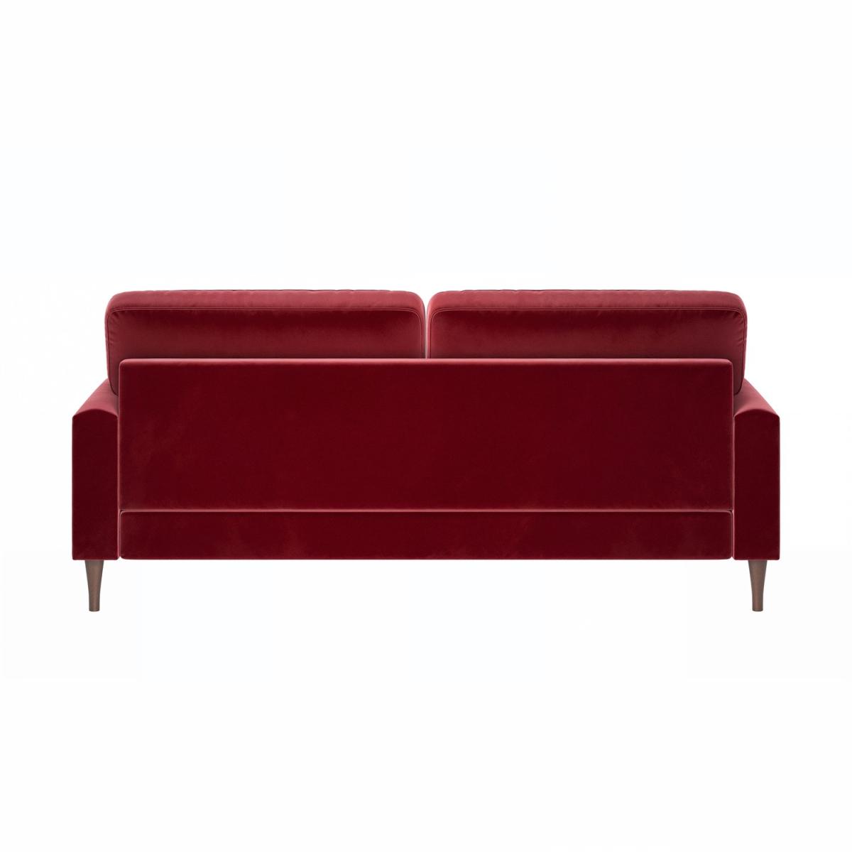 Foam filled Reversible Back Cushions Scatter Cushions Included With its classic ruched saddle arms and elegant silhouette, the Payton 3-Seater Sofa brings a touch of traditional charm to any interior. The refined detailing makes it a statement piece in any living space. Designed to seat three people comfortably, this sofa offers generous space for family gatherings, entertaining guests, or cosy nights in. The plush cushions provide deep, luxurious seating, making it an inviting centrepiece for any home. Crafted from high-quality solid wood, this sofa is built to last, providing strong and reliable support for years to come. The sturdy construction ensures everyday durability, making it a long-term addition to your living space. The dark wooden legs add a sophisticated touch, while the gold castors blend classic charm with functional mobility. The castors make it easy to reposition the sofa without compromising stability. Upholstered in a high-quality burgundy velvet fabric, the Payton Sofa is soft to the touch, offering a comfortable and inviting seating experience. The bold dark red tone complements a variety of colour palettes, making it easy to integrate into any home. Whether used in a formal sitting area, a cosy living room, or an open-plan space, this sofa offers a blend of style, comfort, and practicality, making it ideal for families, couples, or entertaining guests. The Payton 3-Seater Sofa is the perfect blend of traditional elegance and modern comfort. Designed to accommodate up to three people, this spacious sofa offers a timeless aesthetic with ruched saddle arms, adding a touch of classic charm. Upholstered in high-quality and vibrant claret velvet tone, it adds a splash of colour to any interior. Built with a solid wood frame, this sofa is designed for durability and long-lasting support. The oak legs with gold castors provide a sleek and stylish contrast, elevating the look while ensuring easy manoeuvrability. For added personalisation, light oak legs are available as an alternative, allowing you to tailor the sofa to your décor preferences. Comfort is key, and the removable back and seat cushions ensure plush seating and easy maintenance. Two matching scatter cushions add extra cosiness and style, making it an inviting centrepiece for your living space. With simple assembly required—just attach the legs—this sofa is a practical, stylish, and long-lasting addition to any home. Dimensions: W190 x D96 x H85 cm Weight: 54 kg Max supported weight: 100 kg per seat Seats: 3 people Colour: Burgundy Finish: Upholstered Material: Velvet Frame: Solid plywood and eucalyptus wood Assembly required: Yes - just attach the legs Packaging dimensions: W192 x D98 x H61 cm