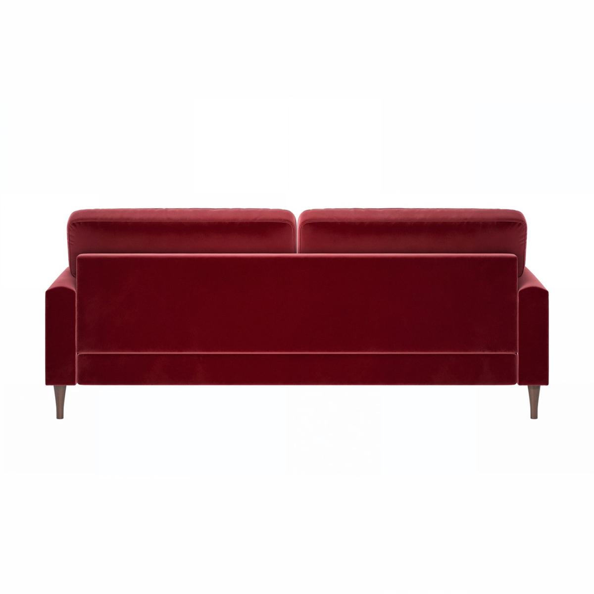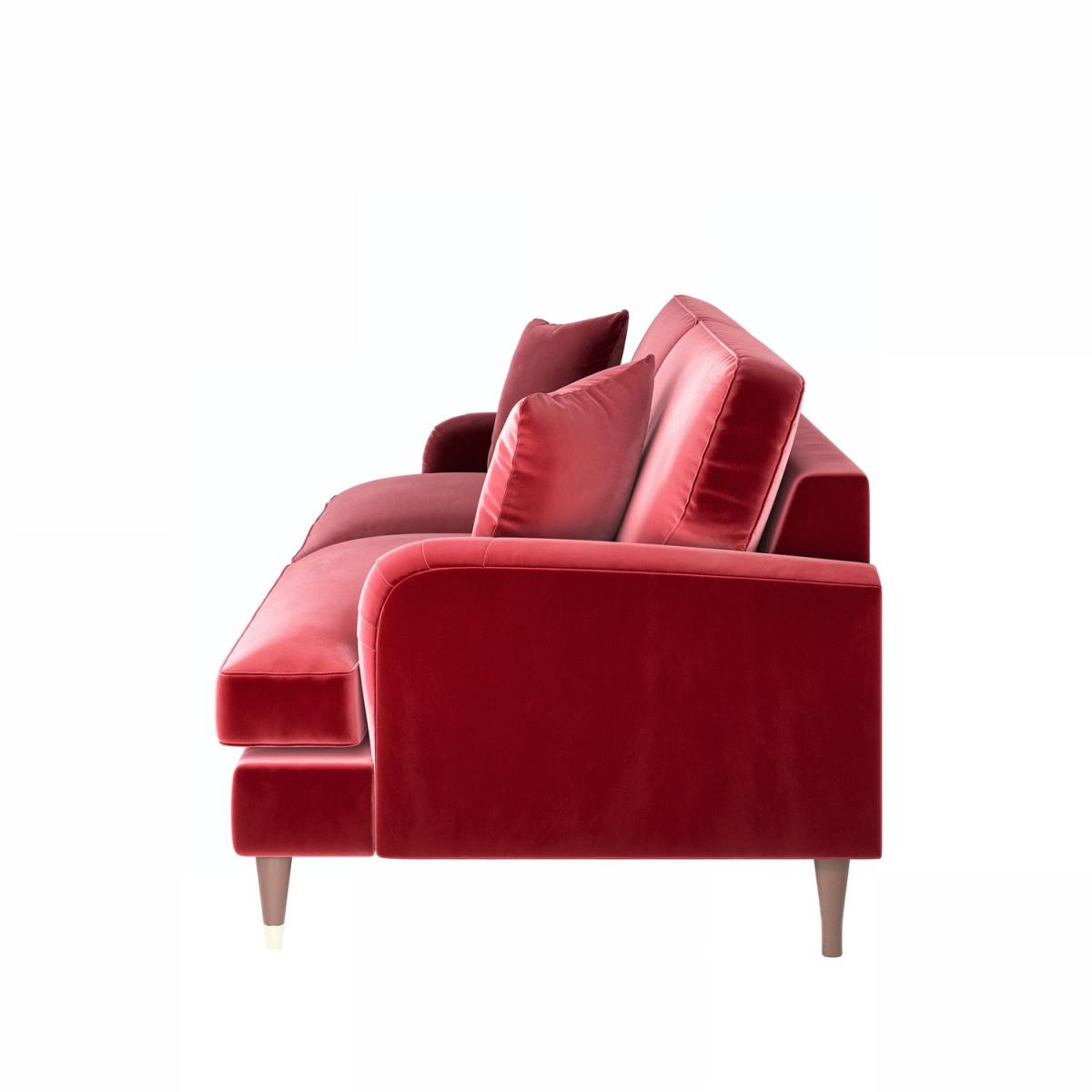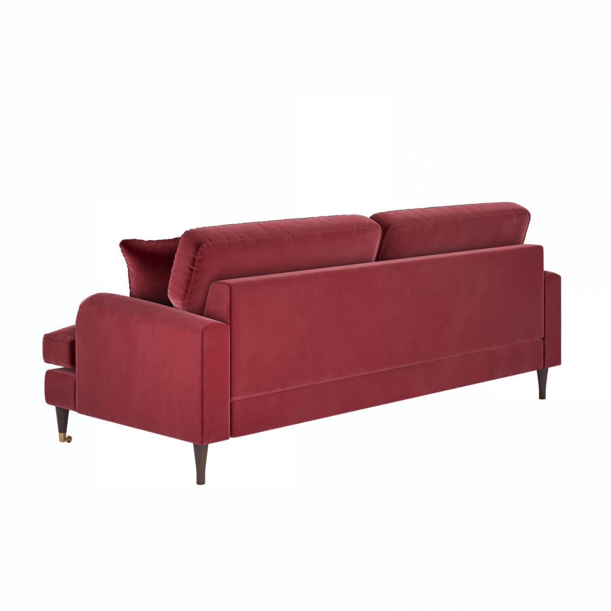 Foam filled Reversible Back Cushions Alternative leg options available Scatter Cushions Included With its classic ruched saddle arms and elegant silhouette, the Payton 4-Seater Sofa brings a touch of traditional charm to any interior. The refined detailing makes it a statement piece in any living space. Designed to seat four people comfortably, this sofa offers generous space for family gatherings, entertaining guests, or cosy nights in. The plush cushions provide deep, luxurious seating, making it an inviting centrepiece for any home. Crafted from high-quality solid wood, this sofa is built to last, providing strong and reliable support for years to come. The sturdy construction ensures everyday durability, making it a practical investment for your living space. The dark oak legs add a sophisticated touch, while the gold castors provide both aesthetic appeal and functional mobility. The castors make it easy to reposition the sofa without compromising stability. Upholstered in a high-quality and vibrant burgundy velvet fabric, the Payton Sofa is soft to the touch, offering a comfortable and inviting seating experience. The bold red tone complements a variety of colour palettes, making it easy to integrate into any home. Whether used in a formal sitting area, a cosy living room, or an open-plan space, this sofa offers a blend of style, comfort, and practicality, making it ideal for families, couples, or entertaining guests. The Payton 4-Seater Sofa is the perfect blend of traditional elegance and modern comfort. Designed to accommodate four people comfortably, this spacious sofa offers a timeless aesthetic with ruched saddle arms, adding a touch of classic charm. Upholstered in high-quality burgundy velvet fabric, the versatile dark red tone effortlessly complements any interior style. Built with a solid wood frame, this sofa is designed for durability and long-lasting support. The oak legs with gold castors provide a sleek and stylish contrast, elevating the look while ensuring easy manoeuvrability. For added personalisation, light oak legs are available as an alternative, allowing you to tailor the sofa to your décor preferences. Comfort is key, and the removable back and seat cushions ensure plush seating and easy maintenance. Two matching scatter cushions add extra cosiness and style, making it an inviting centrepiece for your living space. With simple assembly required—just attach the legs—this sofa is a practical, stylish, and long-lasting addition to any home. Dimensions: W210 x D96 x H85 cm Weight: 54 kg Max supported weight: 100 kg per seat Seats: 4 people Colour: Burgundy Finish: Upholstered Material: Velvet Frame: Solid plywood and eucalyptus wood Assembly required: Yes - just attach the legs Packaging dimensions: W212 x D98 x H61 cm