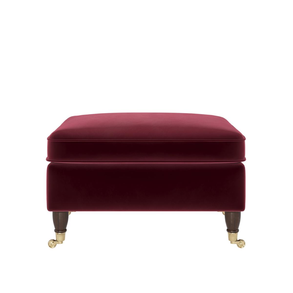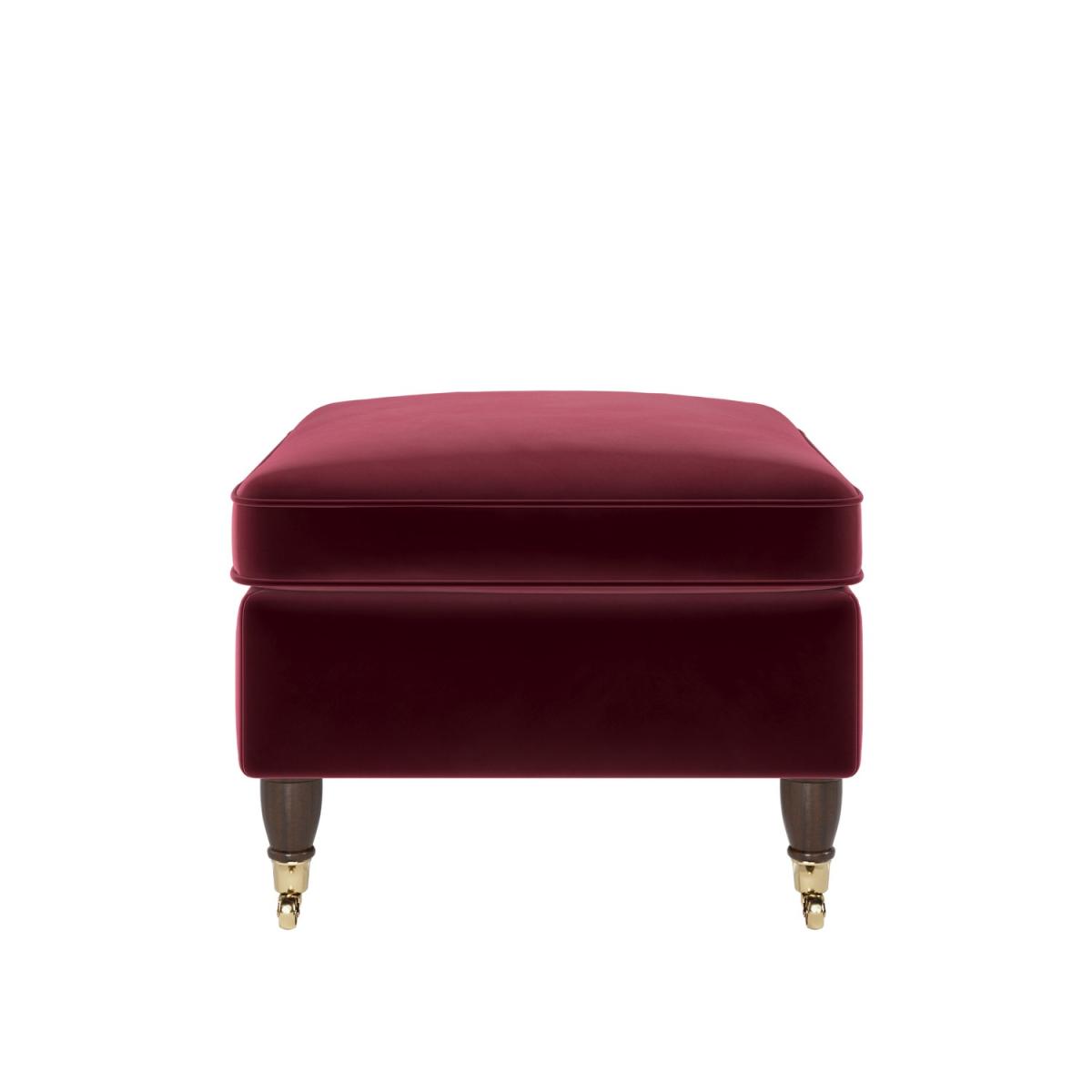 Upholstered in an elegant, durable burgundy velvet, adding a touch of luxury and warmth to your living space. Features a traditional silhouette with turned wooden legs and castors, perfectly complementing the Ramona sofa and armchair. Foam and fibre-filled cushioning provide a soft yet supportive surface for resting your feet or using as extra seating. Ideal as a footrest, additional seat, or stylish accent piece to complete your living room set. The Ramona footstool in burgundy velvet is the perfect finishing touch to a classic, elegant living space. Upholstered in an elegant burgundy velvet, it adds warmth, texture, and sophistication to any room. The traditional design, complete with turned wooden legs and castors, complements the Ramona sofa and armchair beautifully, creating a coordinated and timeless look. Filled with foam and fibre for comfort and support, it’s ideal for resting your feet, providing extra seating, or serving as a stylish accent piece. Combining traditional charm with modern comfort, the Ramona footstool enhances both the style and functionality of your home.