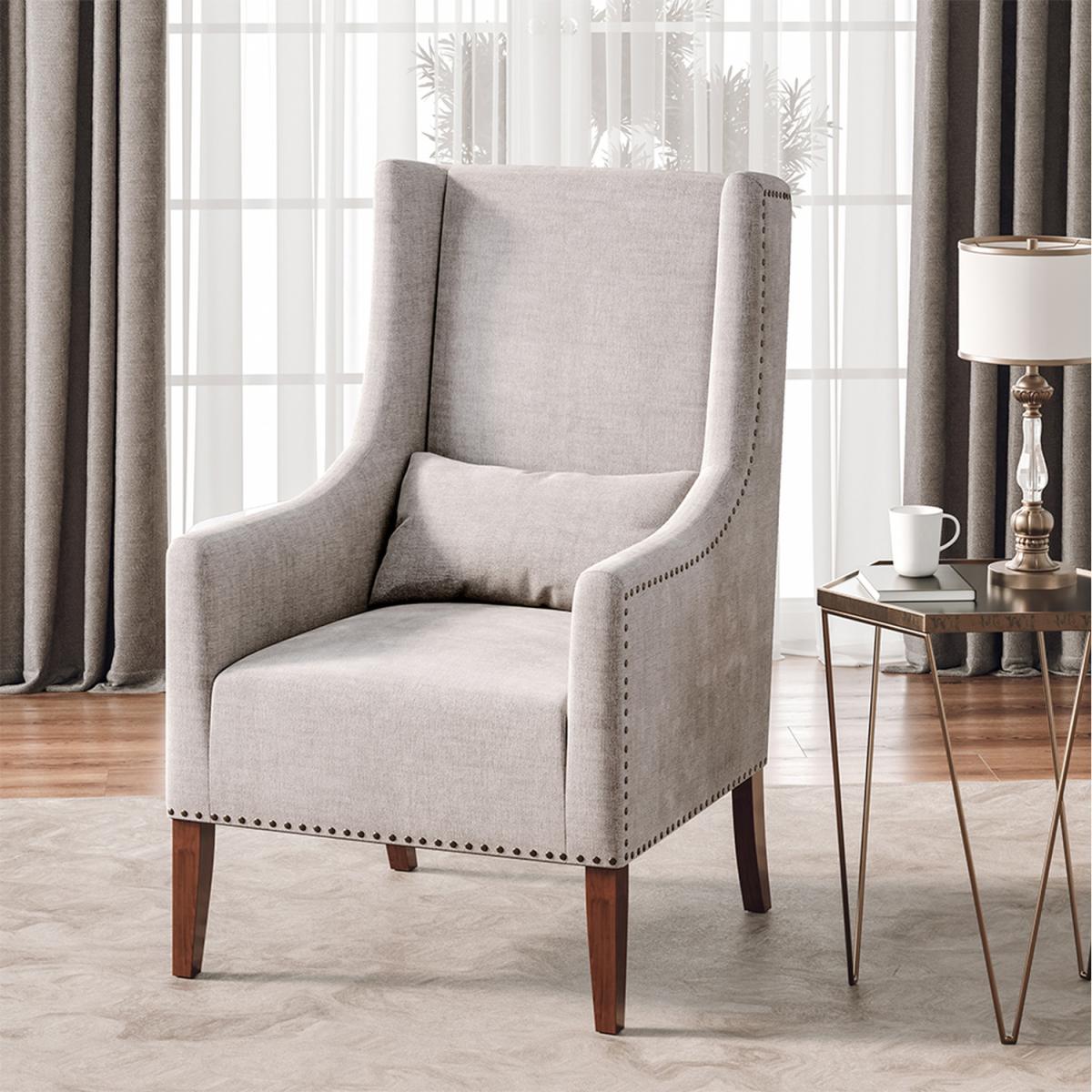 Bring vintage charm and comfort into your home with this high back armchair from Livingandhome. Upholstered in durable, fire-retardant burlap, it features elegant studded trim and swoop arms for a refined look. The sturdy wooden frame ensures long-lasting support, while the added cushion offers extra lumbar comfort. Perfect for living rooms, bedrooms or reading corners, this chair blends style and function beautifully. A timeless piece that complements both modern and traditional interiors.