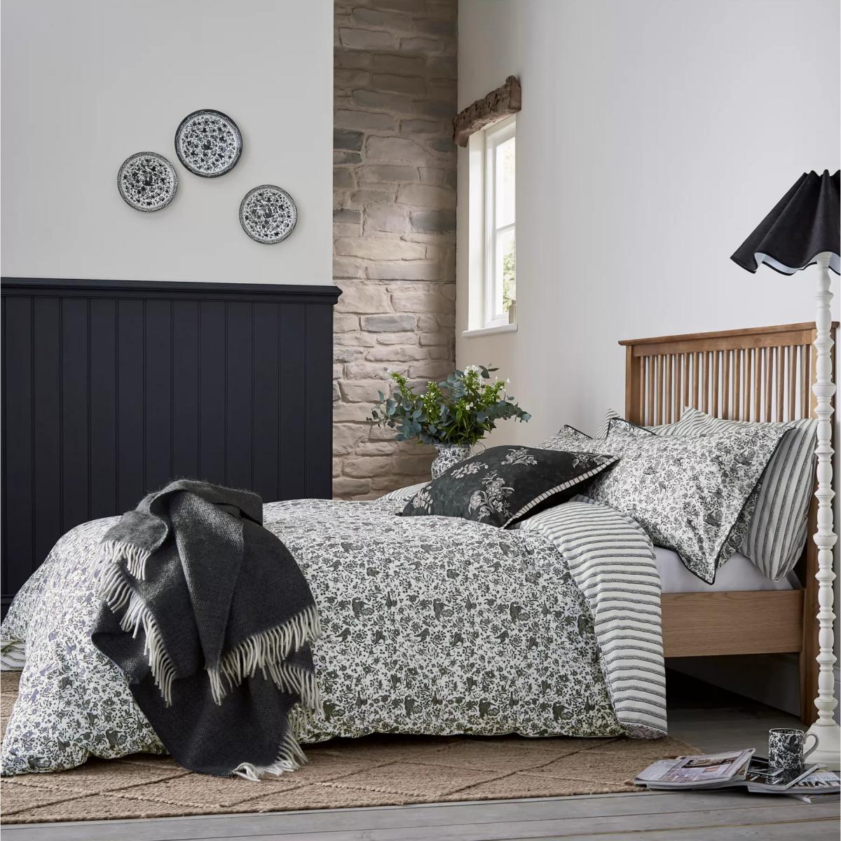 I love the Burleigh x Bedeck peacock bedding for its classic yet contemporary appeal; the dark charcoal grey makes it versatile for various interior styles. It’s a great choice for adding a touch of elegance without feeling too formal, particularly in bedrooms with a muted or neutral palette. I would suggest pairing it with textured cushions or throws in lighter colours or subtle patterns to create visual interest. This bedding set works particularly well in cosy, rustic, or modern interiors where it can anchor a calm colour scheme, and it’s practical too - the cotton percale fabric is both durable and breathable. For styling tips, keep the rest of the bed simple and layered with mixed textures, and perhaps add a few metallic or natural accents in the adjoining space for a more curated look.