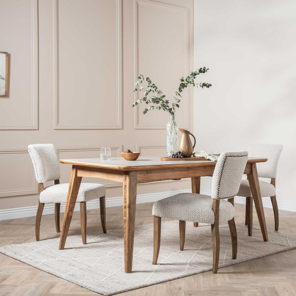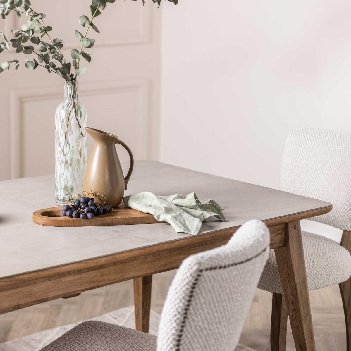 I’m a fan of the Burlington dining table for its clever extending top and soft grey-wood finish, which slots neatly into modern farmhouse, Scandi or pared-back contemporary schemes. The faux-stone surface adds texture without overpowering, so style it simply - think a linen runner, a low greenery centrepiece and a pair of tapered candles. It pairs equally well with leather-backed chairs for a sharper look or woven rattan seats for a relaxed vibe, and the neutral tones mean you can switch up your crockery or textiles seasonally with ease.