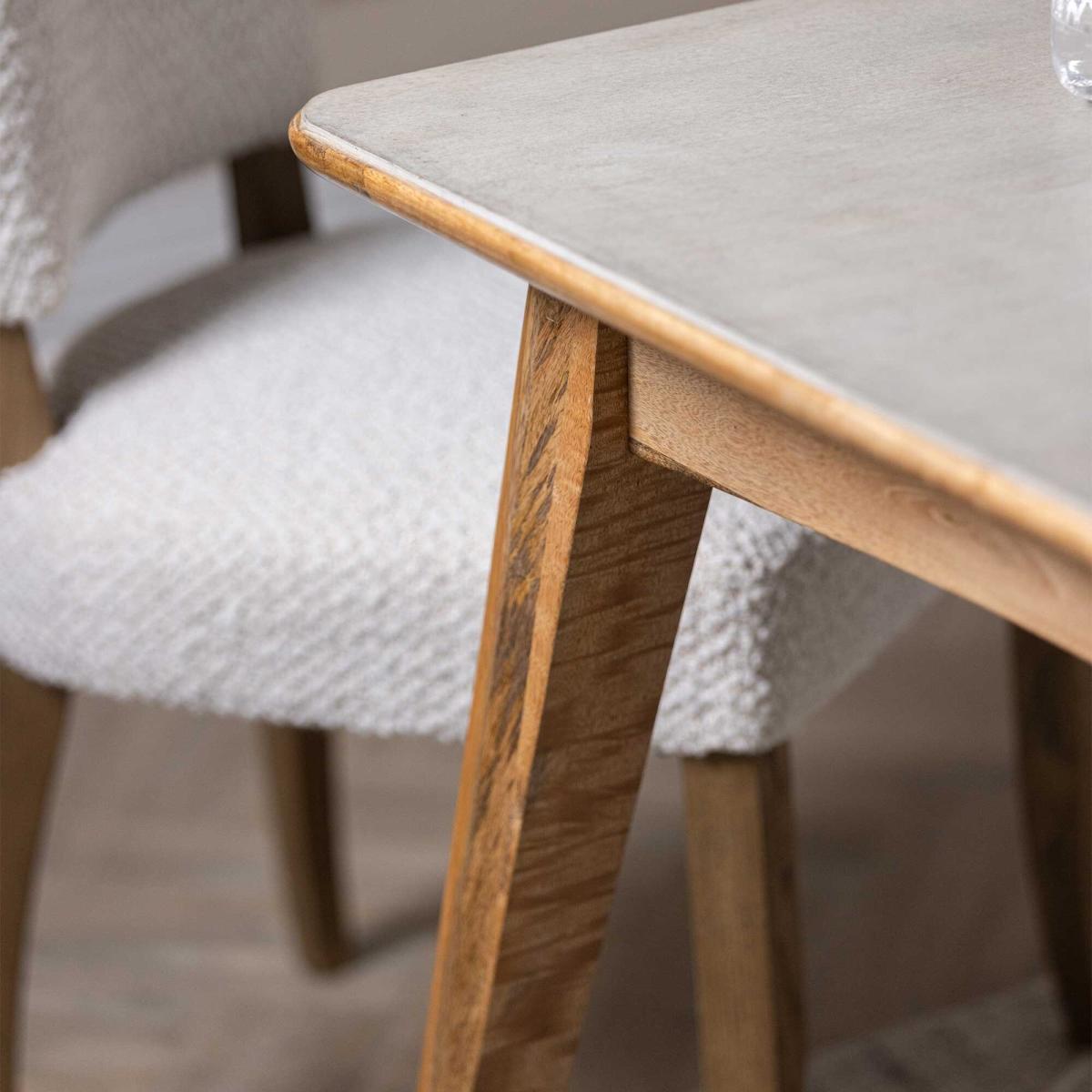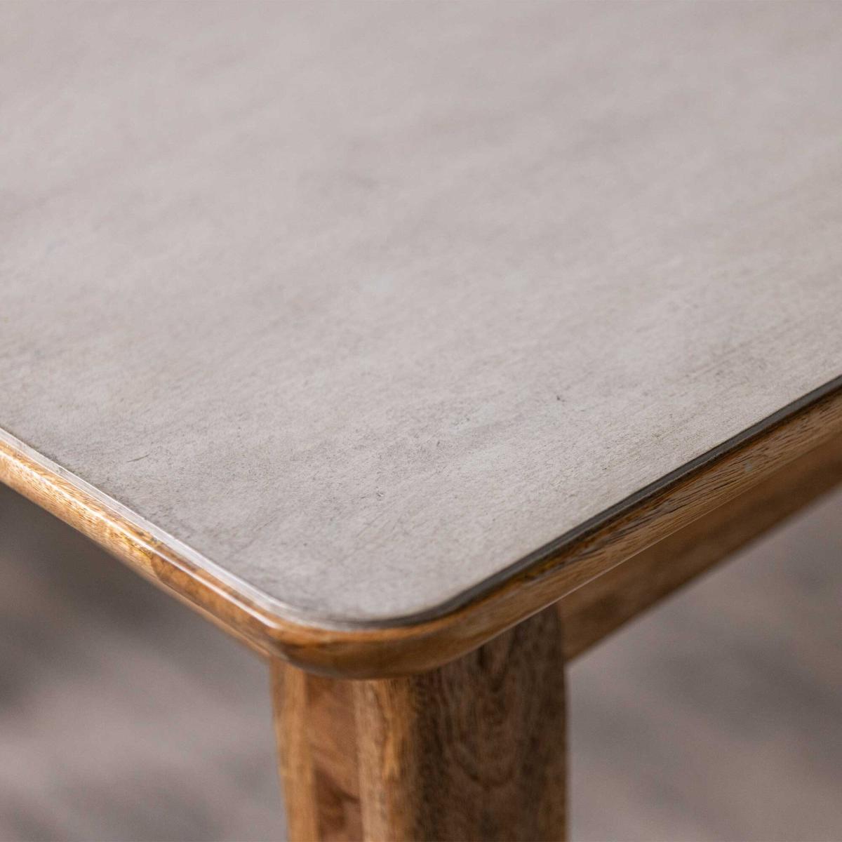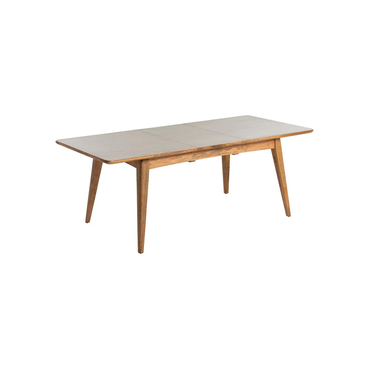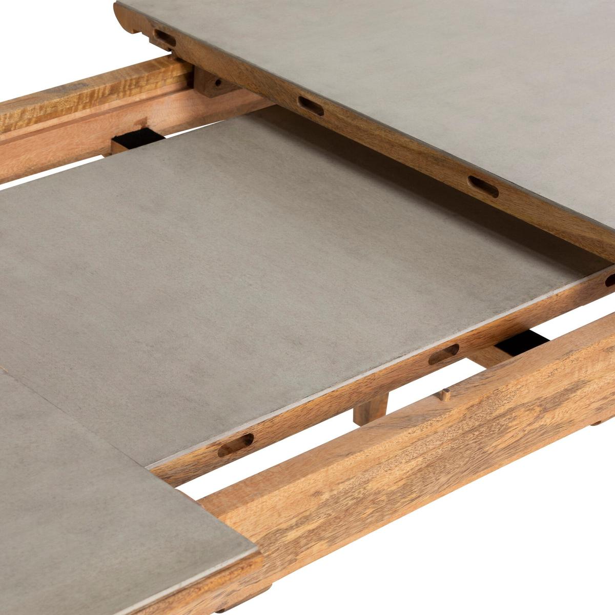 The Burlington Extending Dining Table blends natural warmth with modern durability, featuring a solid mango wood frame and a faux stone cement slab tabletop. Designed to seat six but extendable to accommodate up to eight guests, itrsquo;s perfect for both everyday meals and special gatherings. The smooth cement finish adds a contemporary touch, while the gently curved edges and tapered legs bring mid-century charm. Sturdy and stylish, this table effortlessly adapts to your dining needs.