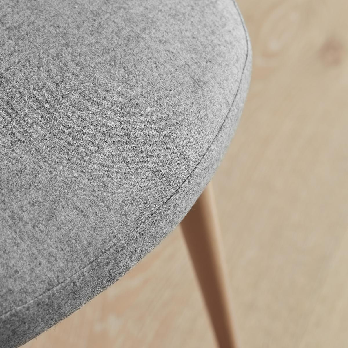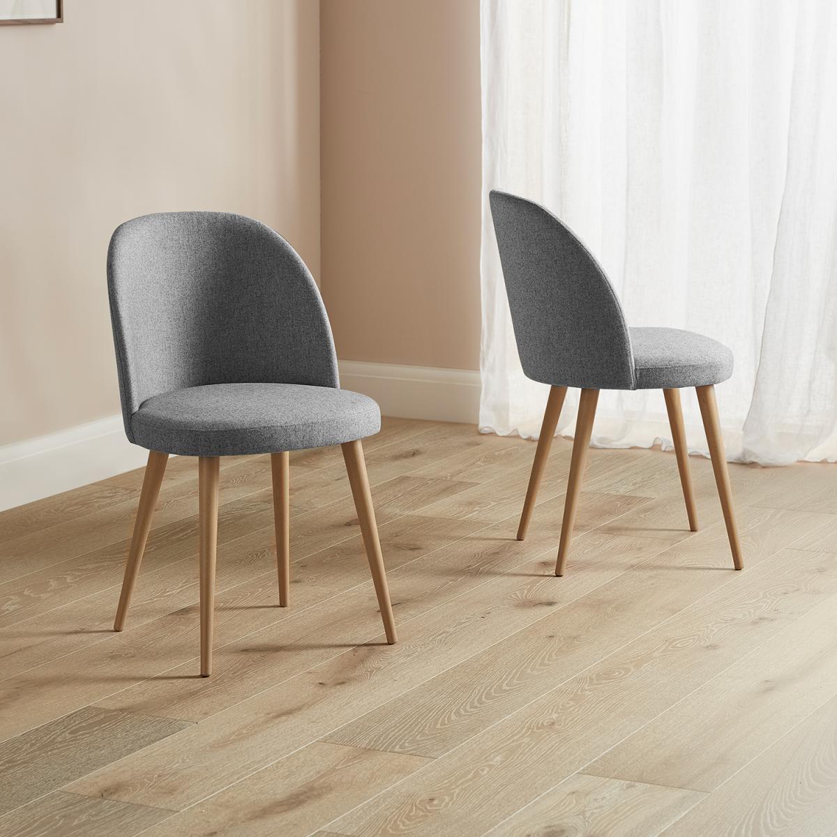 Inject a modern minded fabric dining chair into your dining arrangements with confidence with the sophisticated Burnham Dining Chair. This upholstered chair offers contemporary looks, with soft and playful edges and a high level of quality assured. One of ten fabric/wood combination. Options. In this cupped back chair, there’s plenty of choice to suit your ideal dining room set up. The steel grey shade upholstered dining chair set on a natural tone oak-finished hardwood base. This is a chair that offers pleasing neutrality and chic looks for any number of dining table styles. A wool polyester blend is soft to touch and plenty of seat padding offers comfort.