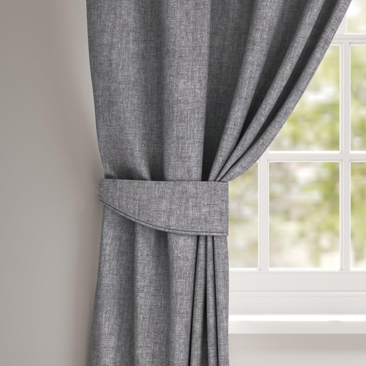 Revitalise your curtains with the understated elegance of our Burnside Pattern Made to Order Tiebacks. Meticulously crafted from fire-retardant fabric, these tiebacks effortlessly marry safety and style, ensuring a tidy and polished appearance for your curtains. Available individually, each tieback offers the choice of a sleek plain or a refined piped edge, allowing you to personalise the look according to your preferences. The versatile Burnside presents a subtle plain with a slight texture, showcased in a lovely smoke colourway, an ideal complement to any room setting. The modern touch added by the pattern makes these tiebacks suitable for both residential and commercial use. Proudly made in the UK, these tiebacks bring unparalleled quality and sophistication to your window treatments. Available in both a plain and piped design, this tieback can be paired with our matching Made to Measure Curtain to give your home, office or commercial space a beautifully co-ordinated finish. Book an appointment with one of our expert consultants who will guide you through the process of creating your very own Made to Order Tieback. *If you are unsure on testing requirements for your chosen environment, check with a qualified fire officer what testing is required & that this meets your needs.