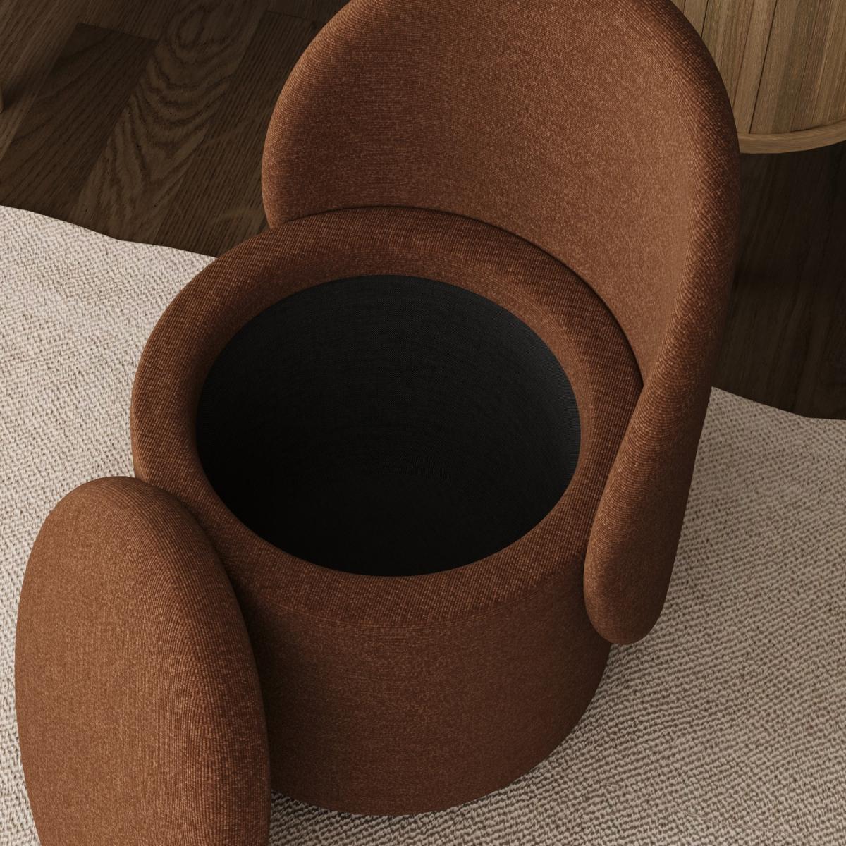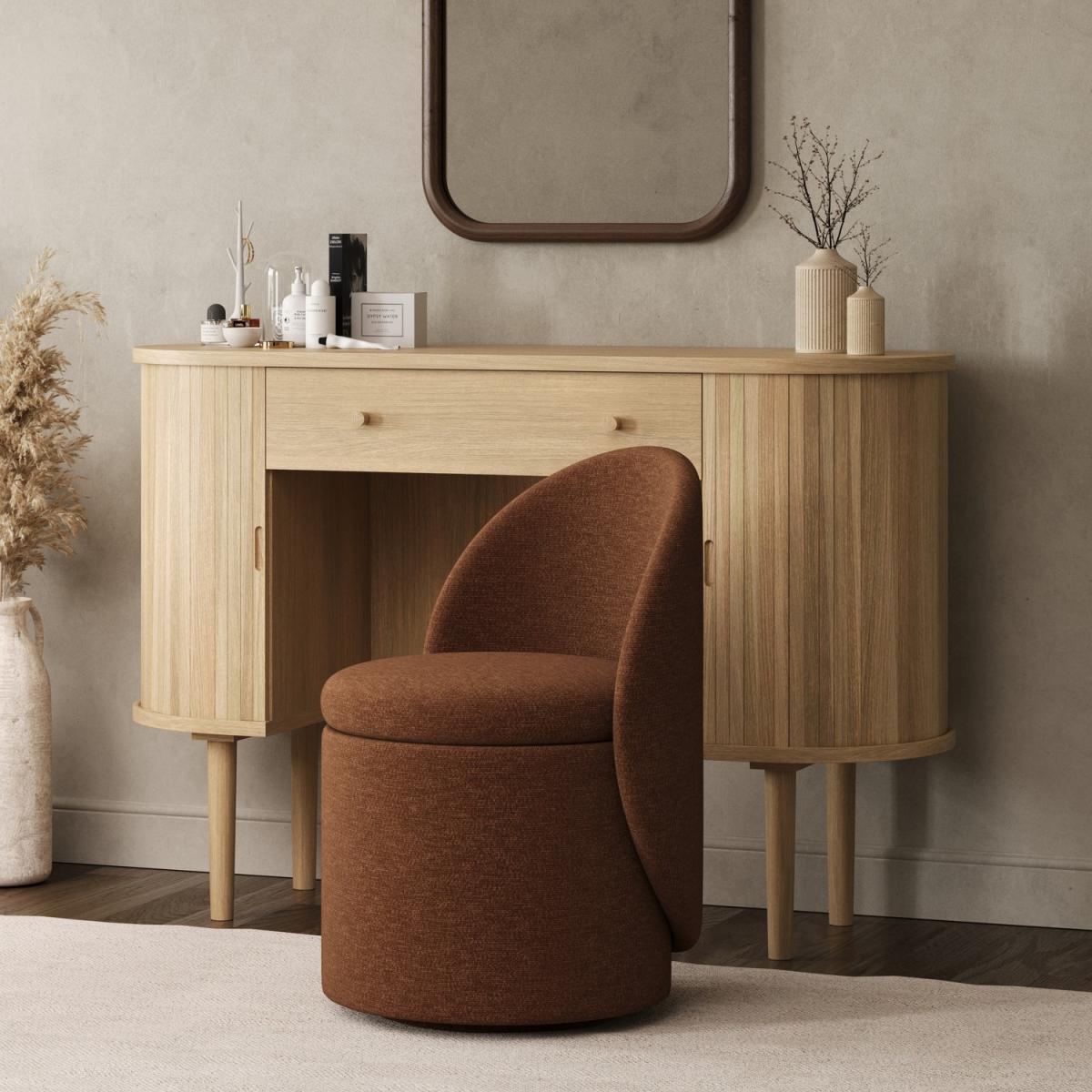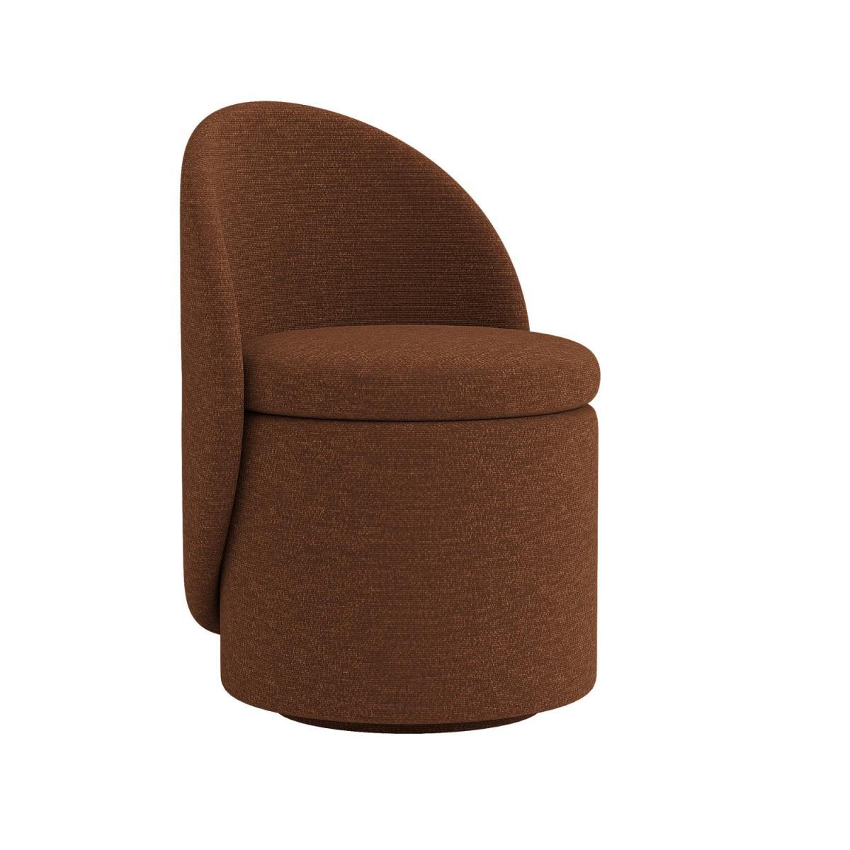 Upholstered in a soft-to-touch burnt orange chenille, Built with high-quality materials, this chair ensures durability and comfort while maintaining its stylish appearance. Add this chic dressing table stool with back support to any bedroom or dressing room. Sit on the plump seat, apply your make-up comfortably, and use the hidden storage to keep your dressing table and bedroom clutter at bay.