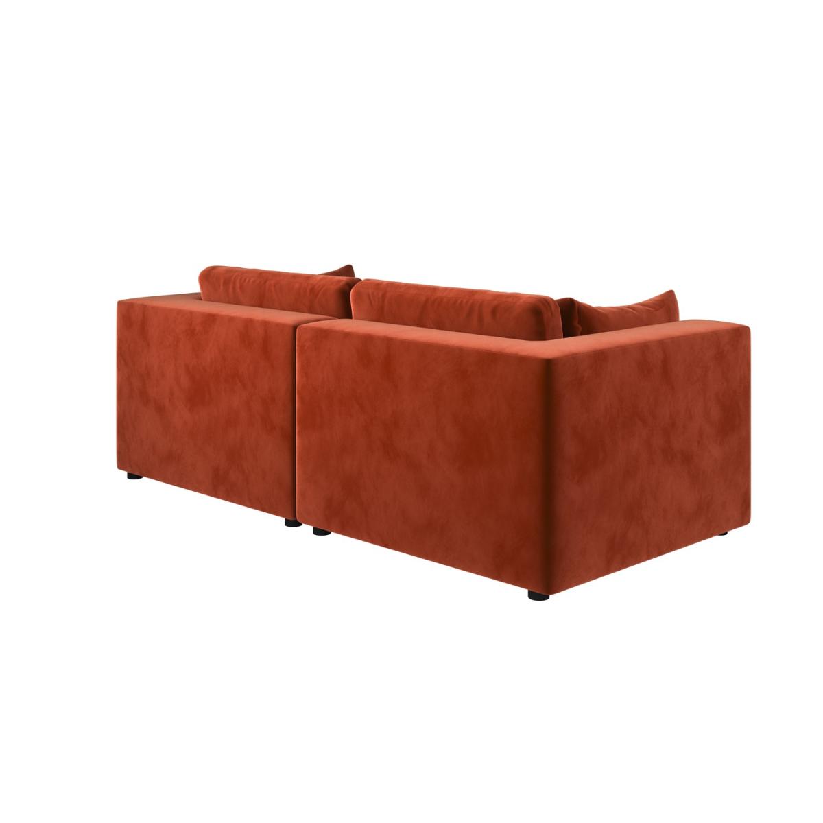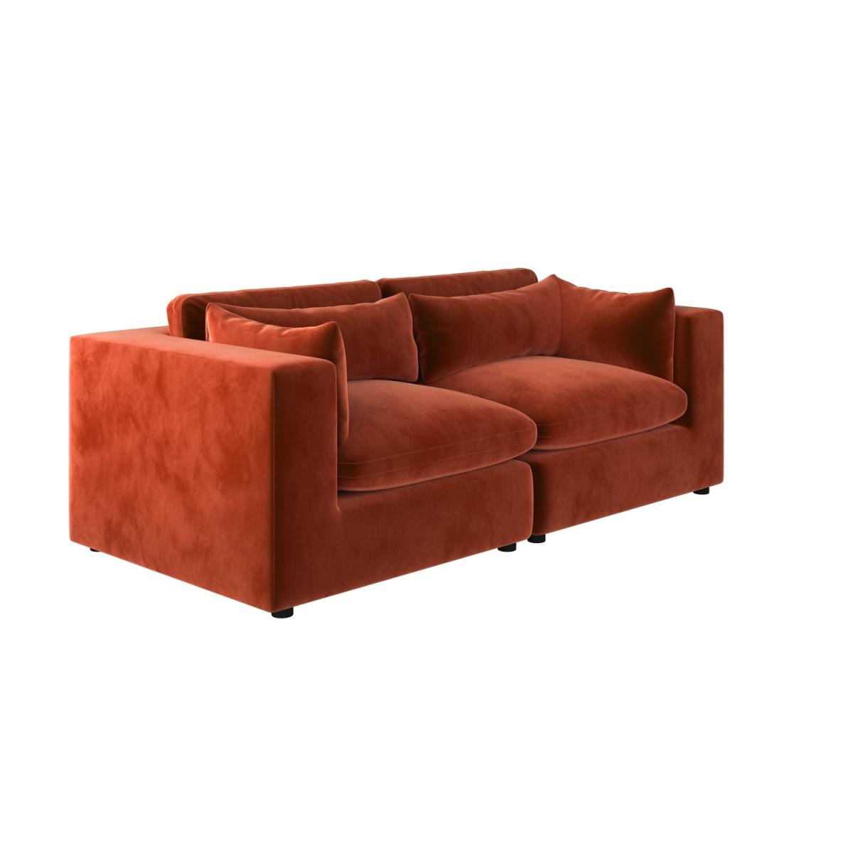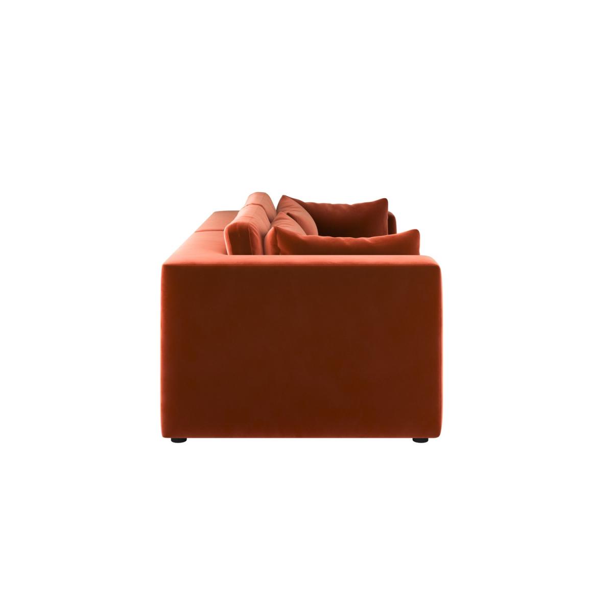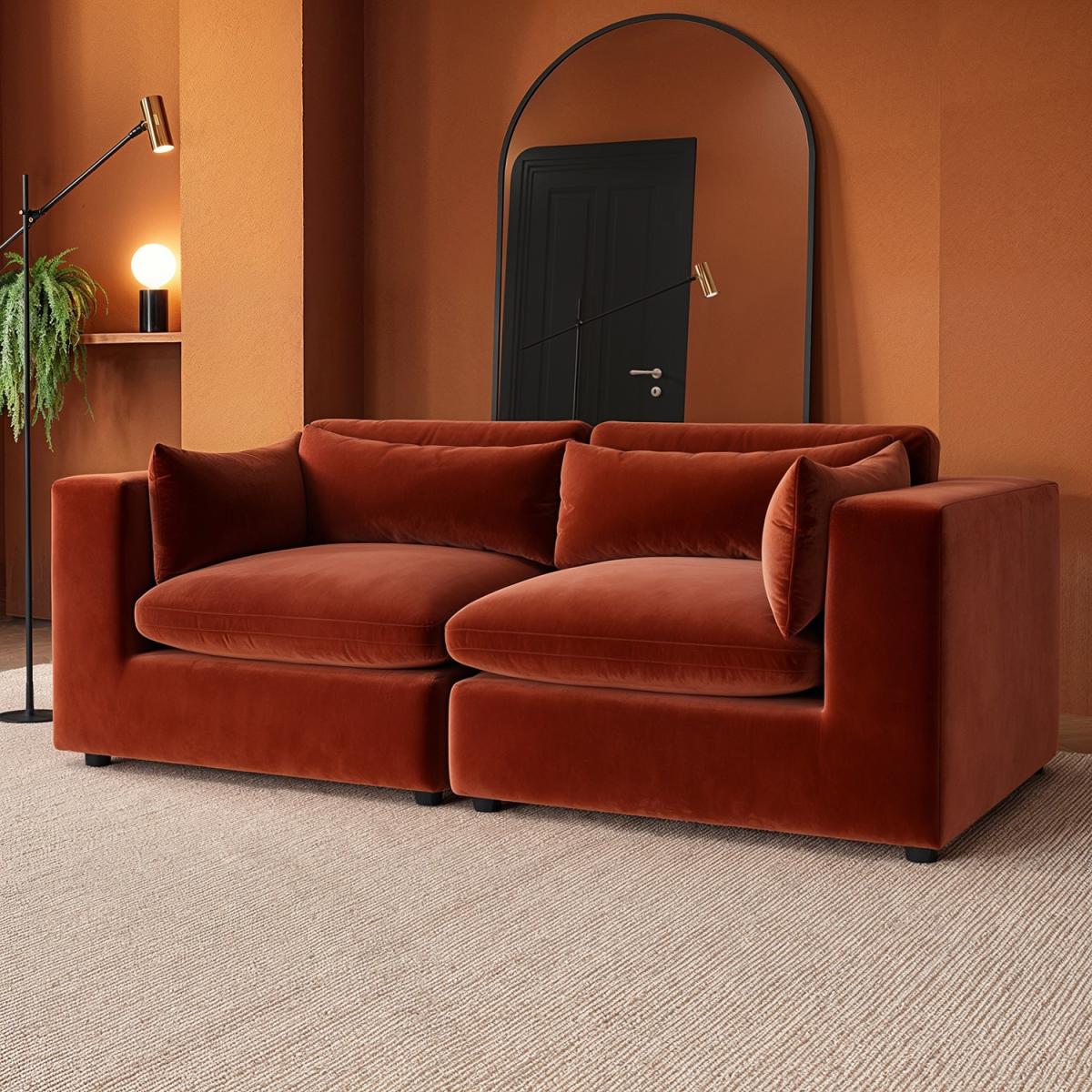 Foam filled Reversible Back Cushions Scatter Cushions Included This 3-seater sofa features clean lines and a sleek, minimalist look that will blend perfectly with any modern interior. Soft, durable velvet in warm burnt orange adds a luxurious, modern touch. Comfortable seating for up to three people, ideal for family use or entertaining guests. Foam-filled cushions offer long-lasting comfort and excellent support for a cosy seating experience for hours. Completely removable back and seat cushions for easy cleaning and maintenance. Simply slot the pieces together for quick setup. Add a touch of modern luxury to any living room with the Hudson three-seater sofa, with space to comfortably seat up to three people. Plump foam-filled seat and back cushions provide maximum comfort, and the covers are removable for easy washing. It’s easy to assemble too; simply slot the pieces together. The back and seat cushions can be removed for regular plumping, ensuring your sofa maintains maximum comfort.