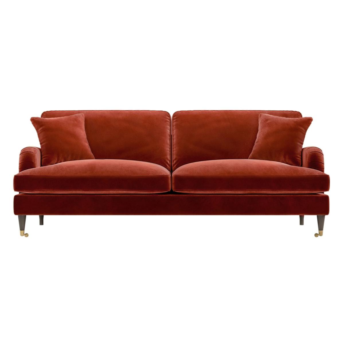 Foam filled Reversible Back Cushions Alternative leg options available Scatter Cushions Included With its classic ruched saddle arms and elegant silhouette, the Payton 4-Seater Sofa adds a touch of traditional charm while seamlessly blending into modern interiors. The refined detailing makes it a statement piece in any living space. Designed to seat four people comfortably, this sofa offers generous space for family gatherings, entertaining guests, or cosy nights in. The plush cushions provide deep, luxurious seating, making it an inviting centrepiece for any home. Crafted from high-quality solid wood, this sofa is built to last, providing strong and reliable support for years to come. The sturdy construction ensures everyday durability, making it a practical investment for your living space. The dark wenge-stained wooden legs add a sophisticated touch, while the gold castors provide both aesthetic appeal and functional mobility. The castors make it easy to reposition the sofa without compromising stability. Upholstered in a high-quality velvet fabric, the Payton Sofa is soft to the touch, offering a comfortable and inviting seating experience. Whether used in a formal sitting area, a cosy living room, or an open-plan space, this sofa offers a blend of style, comfort, and practicality, making it ideal for families, couples, or entertaining guests. The Payton 4-Seater Sofa is the perfect blend of traditional elegance and modern comfort. Designed to accommodate up to four people, this spacious sofa offers a timeless aesthetic with ruched saddle arms, adding a touch of classic charm. Upholstered in a bold and vibrant burnt orange velvet, it effortlessly complements any interior style. Built with a solid wood frame, this sofa is designed for durability and long-lasting support. The wenge legs with gold castors provide a sleek and stylish contrast, elevating the look while ensuring easy manoeuvrability. For added personalization, light oak legs are available as an alternative, allowing you to tailor the sofa to your décor preferences. Comfort is key, and the removable back and seat cushions ensure plush seating and easy maintenance. Two matching scatter cushions add extra cosiness and style, making it an inviting centrepiece for your living space. With simple assembly required—just attach the legs—this sofa is a practical, stylish, and long-lasting addition to any home. Dimensions: W210 x D96 x H85 cm Weight: 54 kg Max supported weight: 100 kg per seat Seats: 4 people Colour:Burnt Orange Finish: Upholstered Material: Velvet Frame: Solid plywood and eucalyptus wood Assembly required: Yes - just attach the legs Packaging dimensions:W212 x D98 x H61 cm