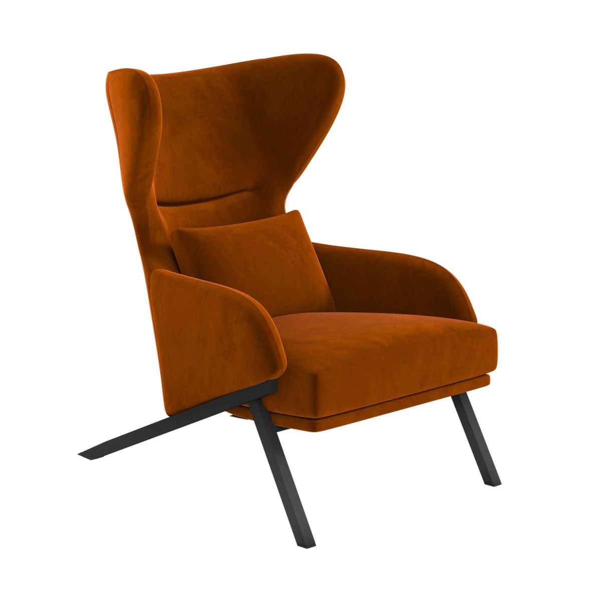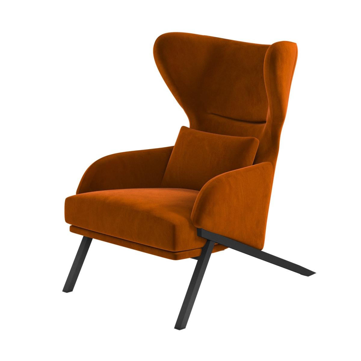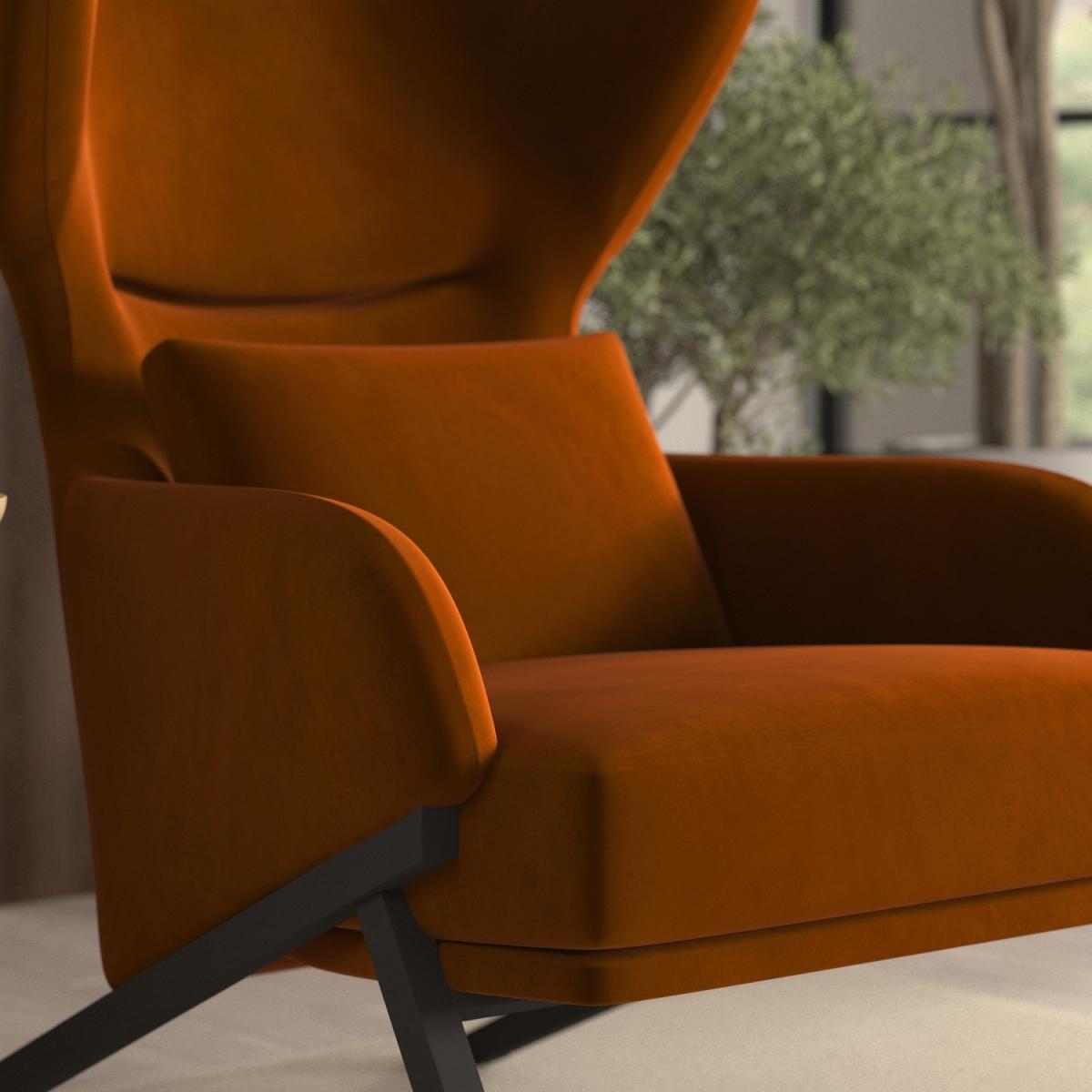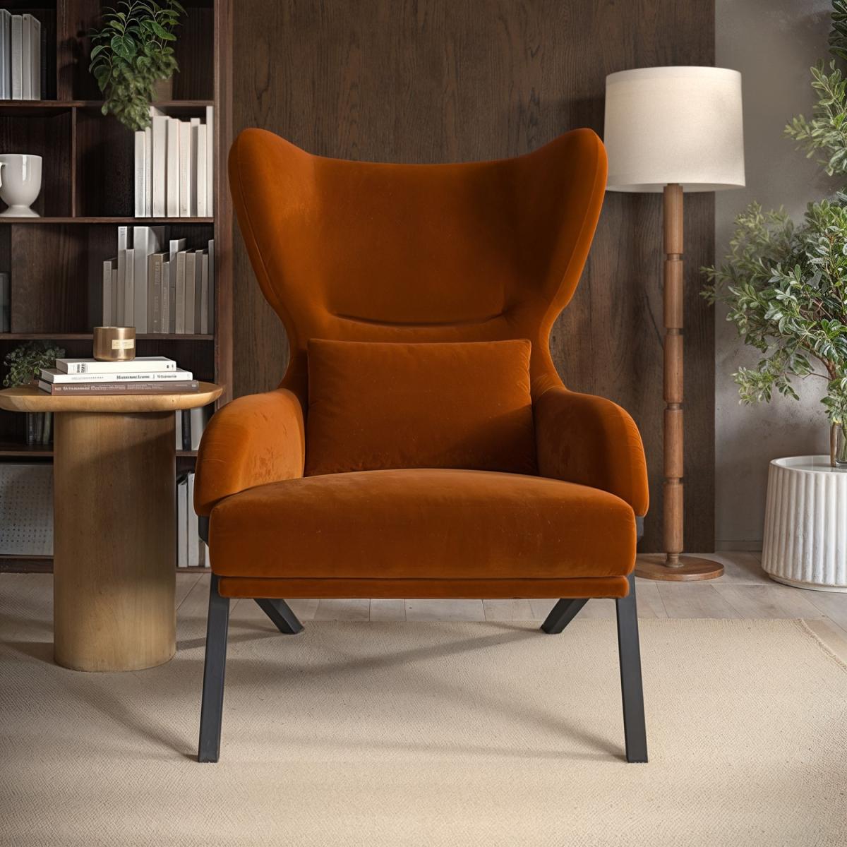 Distinctive curved silhouette adds a modern and stylish touch to any room. Upholstered in soft, burnt-orange velvet for a chic, sophisticated look. Cushions are foam-filled for excellent comfort and support. Powder-coated black metal legs provide durability and stability. Easy slot-together design for quick and hassle-free setup. Elevate your living space with the Clarence Accent Chair, a stunning blend of modern and mid-century design. Upholstered in luxurious burnt orange velvet, this armchair features a curved silhouette with foam-filled cushions for ultimate comfort and support. Powder-coated black metal legs provide sturdy construction, while scatter cushions and removable covers enhance practicality. Ideal for a chic and cosy living room, it requires minimal assembly with easy slot-together pieces. Dimensions:W70.5 x D100.5 x H112 cm Packaging dimensions:W91 x D69.5 x H98 cm Weight: 17.6 kg Max supported weight: 130 kg Colour:Burnt Orange Finish: Upholstered Material: Velvet, metal Filling: Foam Frame:Powder coated black metal Assembly required: Yes