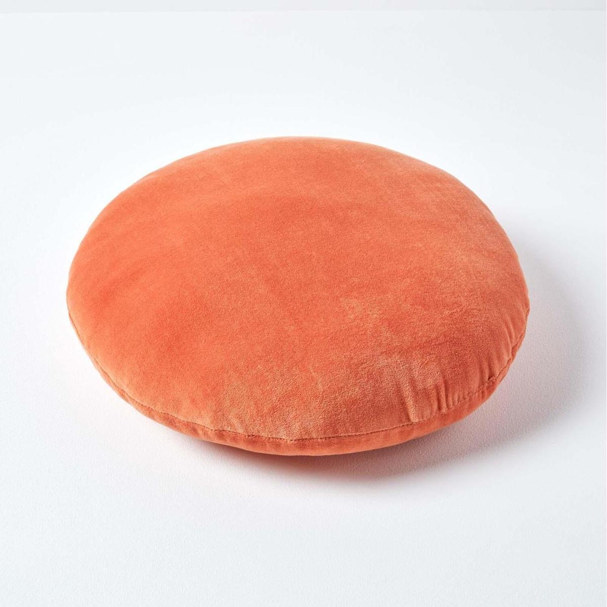 Add a pop of colour to your home interiors with Homescapes round velvet cushion. Feeling incredibly soft to the touch, it has been woven from 100 cotton to create a more luxurious look with a subdued and subtle colour tone. Measuring 40 cm in diameter, this round cushion is on-trend and can be used anywhere in your home. Perfect for layering up on your sofa or using as a focal point on your bed or on armchair, you could also use this round velvet cushion on round bistro garden chairs (do not leave outside when not in use). In this contemporary burnt orange shade, this round velvet cushion will add colour and texture to your home interiors.