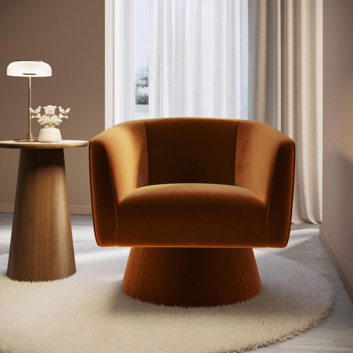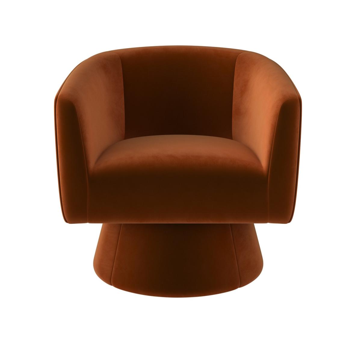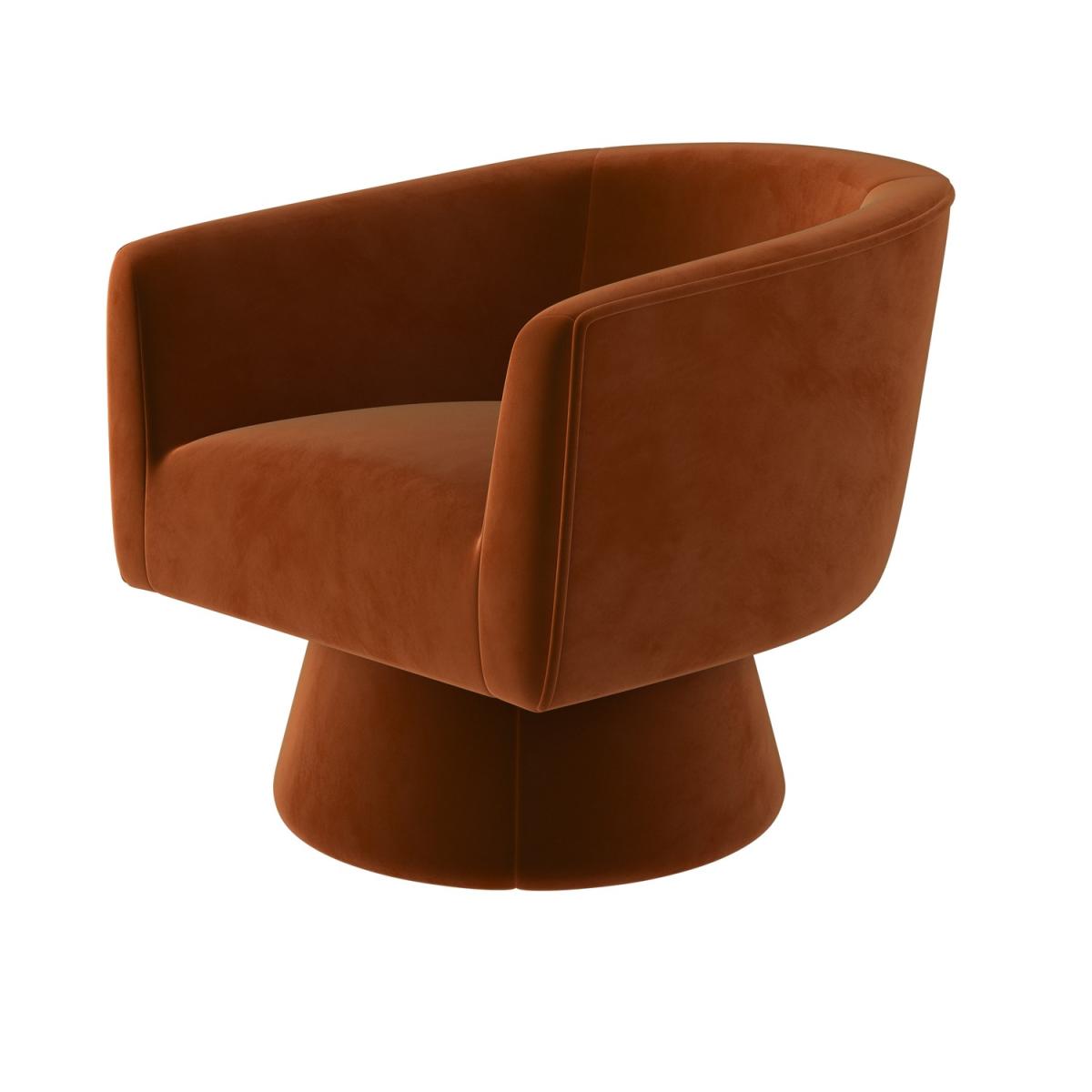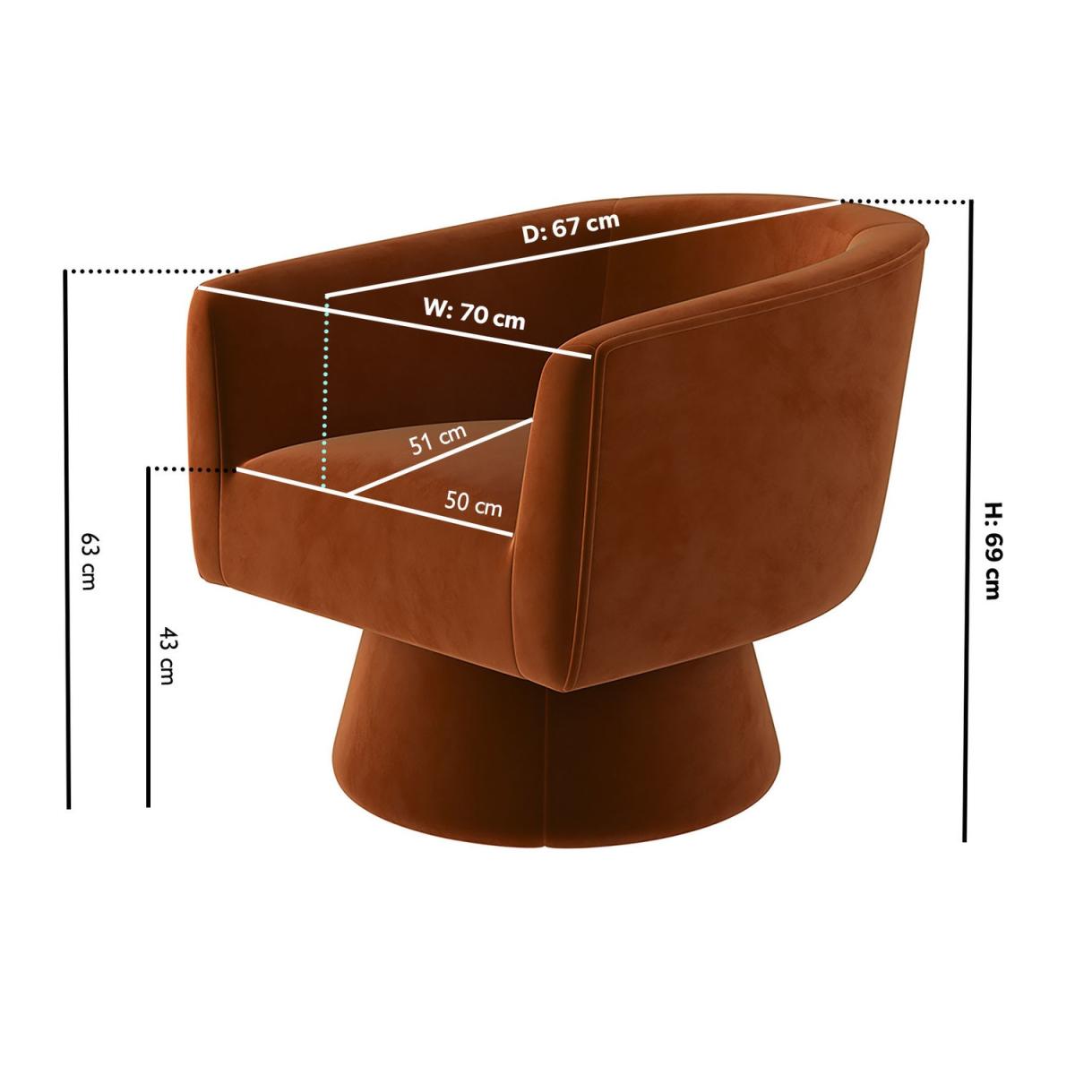 The rounded backrest and supportive armrests provide maximum comfort, making it perfect for nursing, feeding, or relaxing. Wrapped in soft, luxurious burnt orange velvet that adds warmth and elegance, blending beautifully with both modern and traditional interiors. Enjoy smooth, easy movement with a full swivel base, ideal for feeding time or soothing your little one without straining. A statement piece for nurseries, bedrooms, or living rooms, offering both style and everyday functionality. Simply attach the base, and it’s ready to use. Add a touch of modern luxury to your home with the Cairo Swivel Nursing Chair. Crafted from soft, durable velvet and designed for ultimate comfort, this chair offers a supportive curved back, plush cushioning, and full swivel functionality for flexibility. Upholstered all around for a sleek finish, it looks stunning from every angle, perfect for any room in your home.