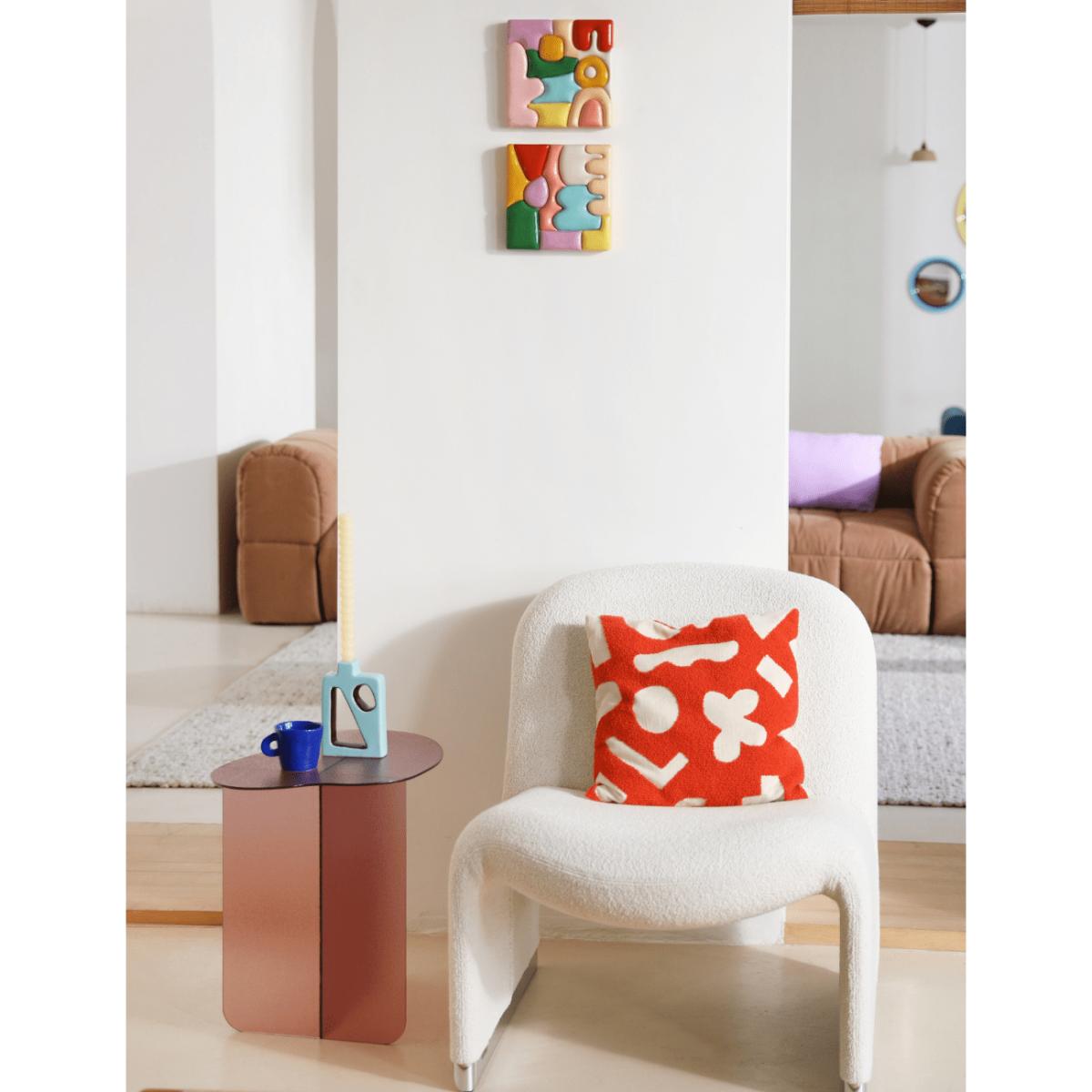 Add style and texture to your space with the Burnt Red Abstract Cushion. Full of cut-out shapes and layers of texture, this hand-tufted cushion is perfect for adding extra stylish details to your sofa. Also is available in a dusky pink tone.