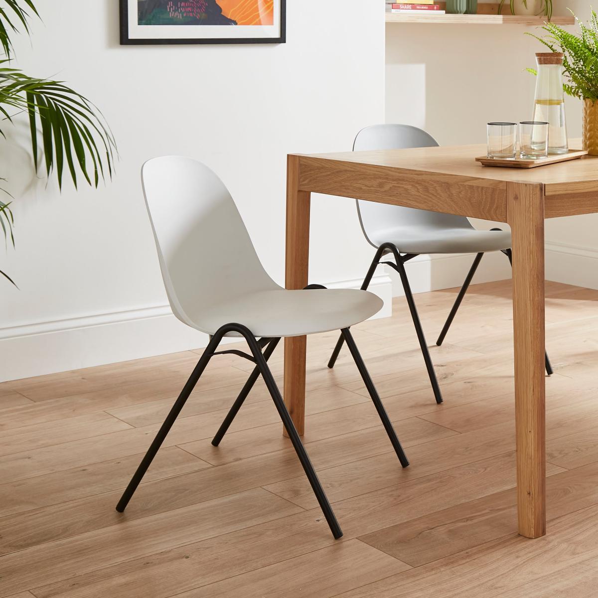 I’m a fan of the Burton chairs for their clean, curved shell and slim black legs - they feel fresh without overpowering a space. The moulded seat is comfortable and easy-to-wipe, so they suit everything from a pared-back Scandi kitchen to a pared-down industrial loft. Styling tip: soften the look with a simple sheepskin or a thin, patterned seat pad, and mix them around a solid oak table to add warmth. They also layer nicely with a jute rug underneath and a cluster of pendant lights above for a lived-in yet contemporary feel.