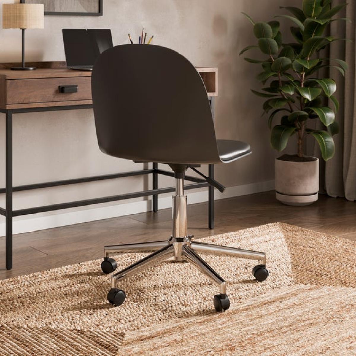I really like this office chair for its sleek, understated design which makes it versatile across a range of interior styles, from contemporary home offices to more minimalist workspaces. Its simple black upholstery and chrome base give it a professional yet unobtrusive look, so it blends well without overpowering the room. Practical styling tips include pairing it with a matching desk and adding a colourful or textured rug underneath to soften the space. It works especially well in interiors focusing on functionality with a clean aesthetic, and its adjustable height and mobility make it as practical as it is stylish.