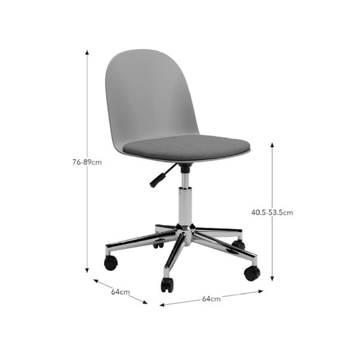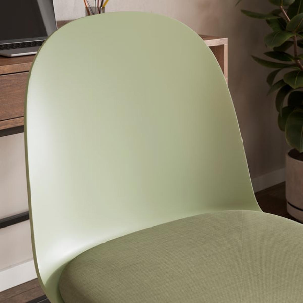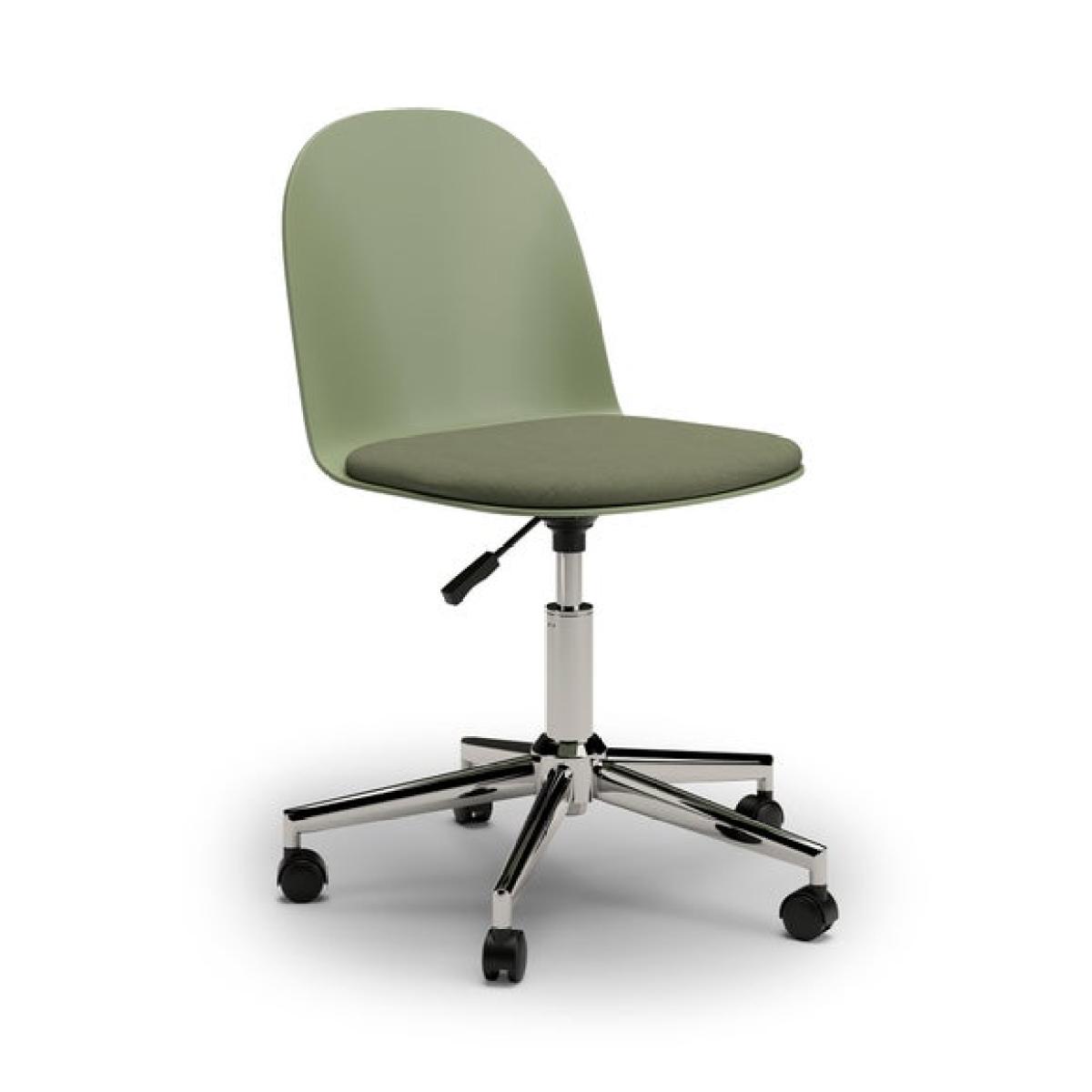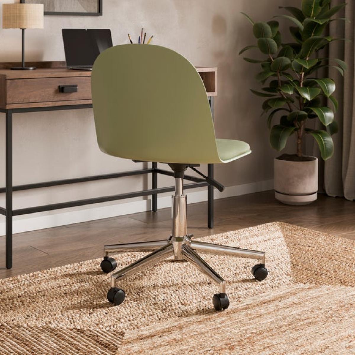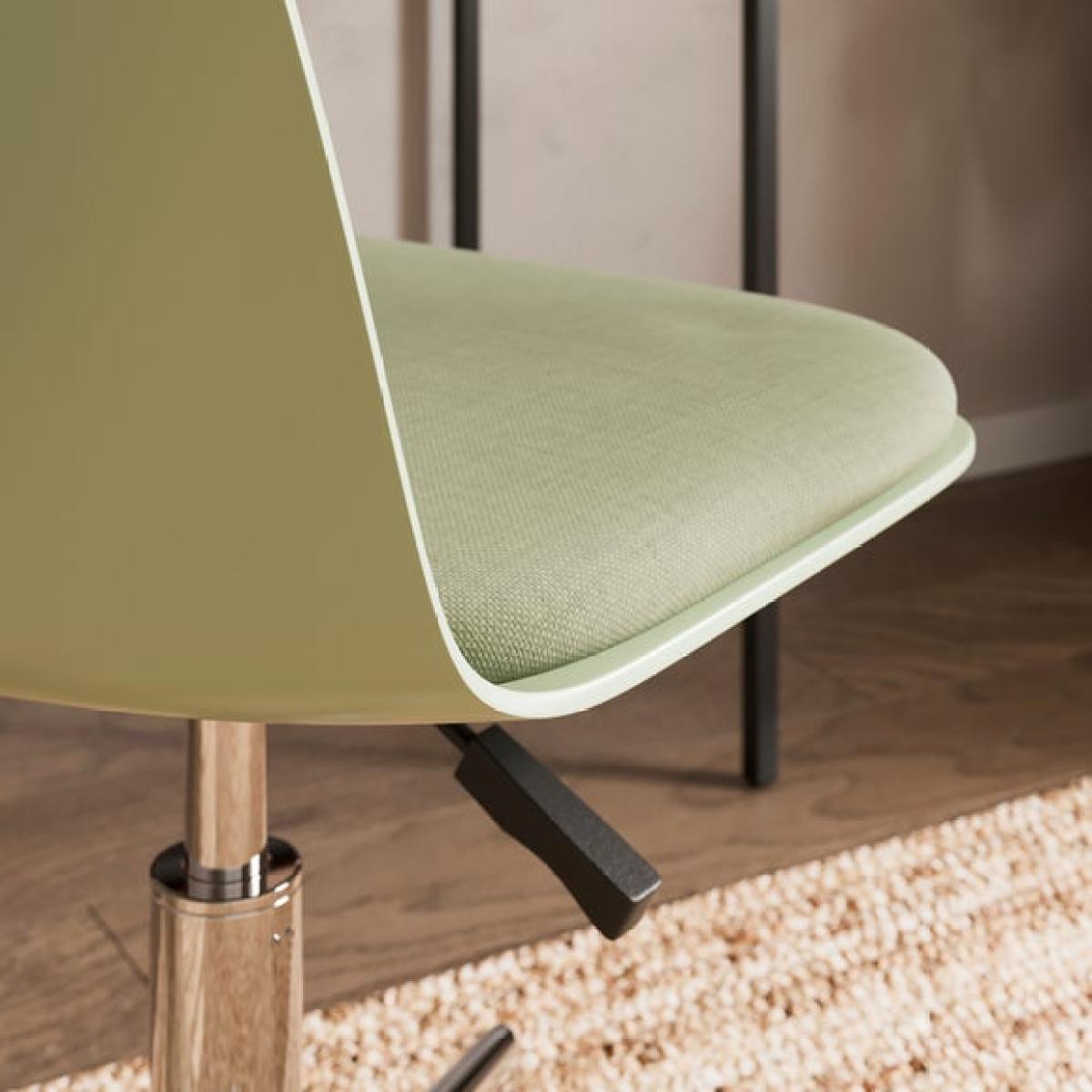 I love this office chair for its clean, minimalist design and versatile colour that suits a variety of interiors, from modern home offices to more traditional studies. Its soft green tone adds a touch of colour without overwhelming space, making it ideal for creating a calm, focused environment. Practical styling tips include pairing it with natural wood desks and textured textiles for a warm, inviting look, or contrasting it with bold accessories for a more contemporary, eclectic vibe. Its adjustable height and swivel function make it a practical choice for everyday use, while its understated style ensures it complements rather than dominates your space.