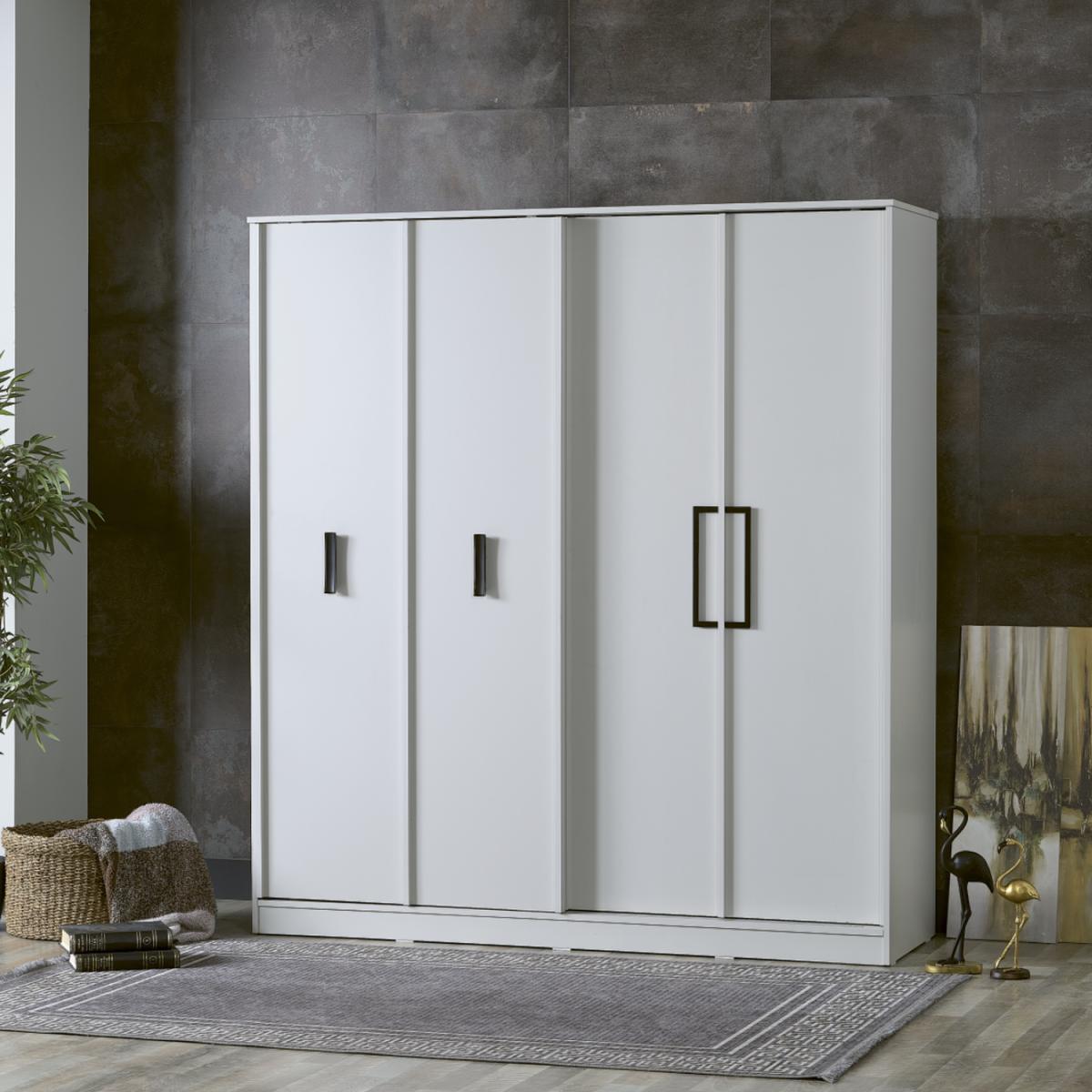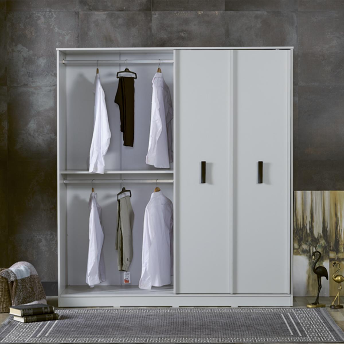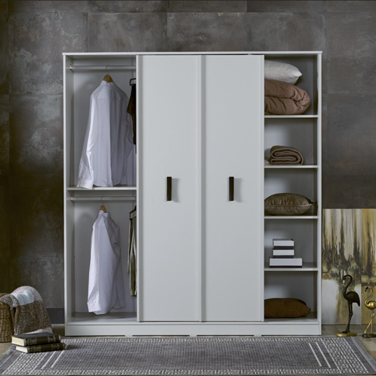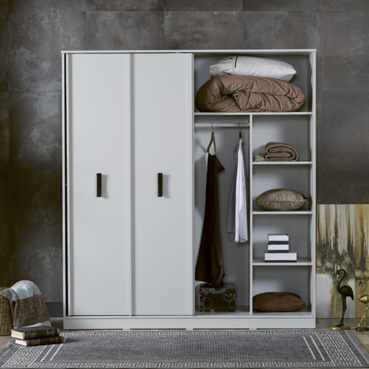 This wardrobe reflects modernity in your bedroom with its contemporary and simple design. This two-door sliding wardrobe provides plenty of storage potential with 3 hanging rails and 5 internal storage shelves. Its off-white colour will match your existing decoration smoothly. Featuring elegant sliding doors which provide a versatile and spacious storage solution, this wardrobe is a fantastic addition to your home. Assembly is required.