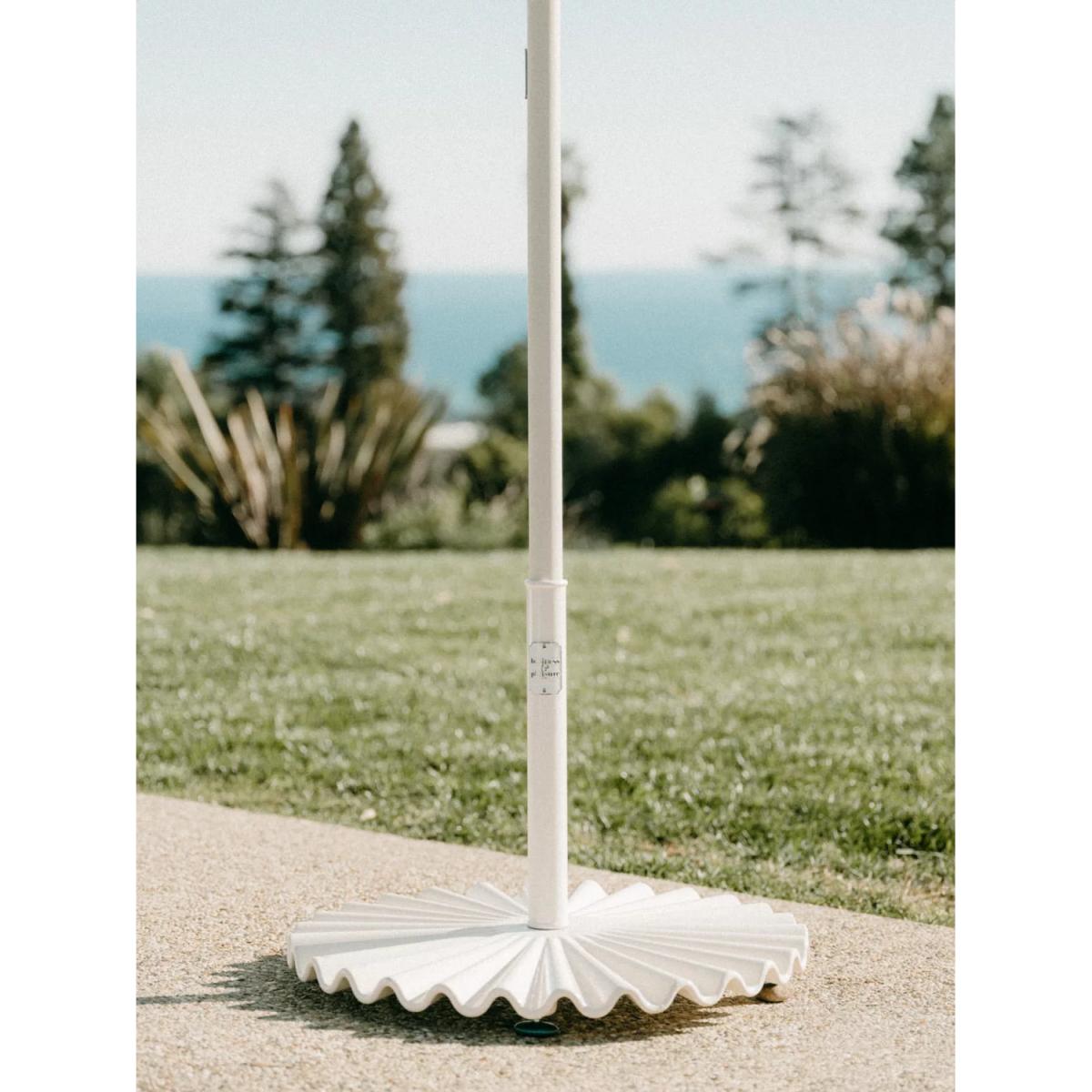 Leave it to Business & Pleasure Co. to design an attractive parasol base. Made from a custom carbon steel mould, this clamshell-inspired base is galvanised and finished with a heavy powder coating to endure the harshest of elements. A truly stunning signature design from the brand to match their stylish range of garden parasols. Every detail matters, all the way down to the base.